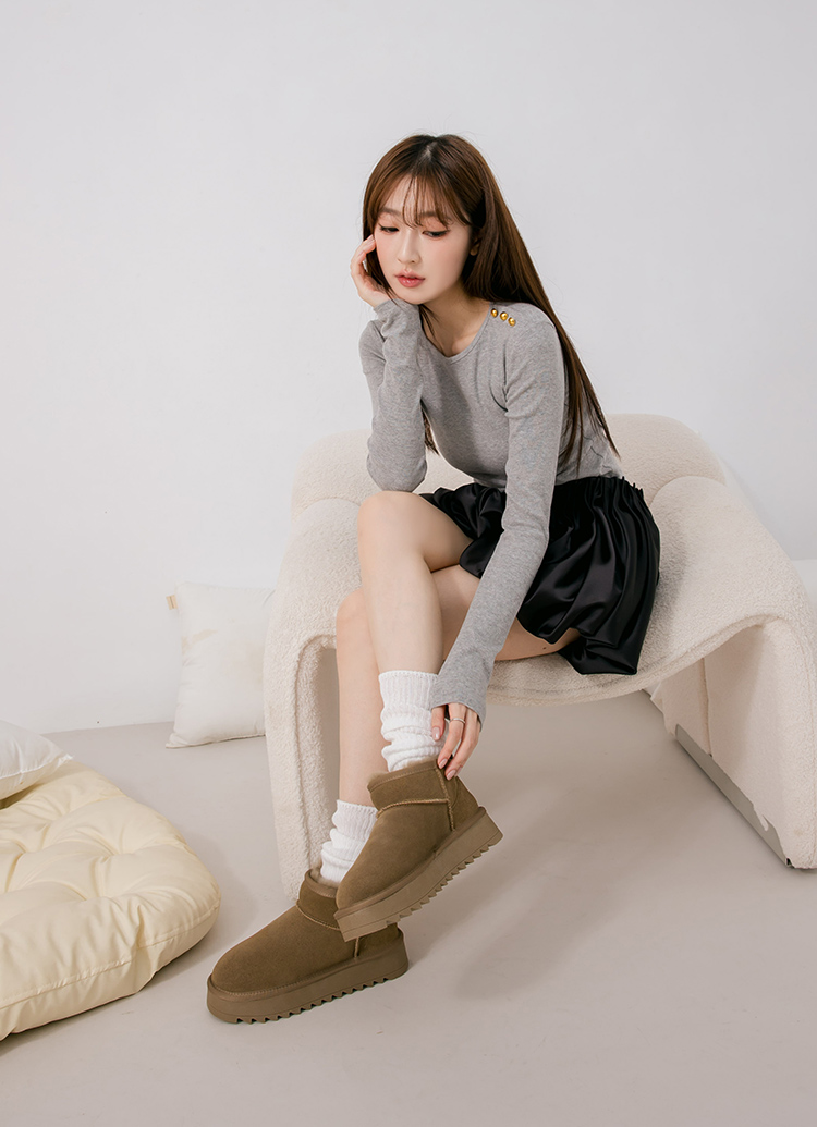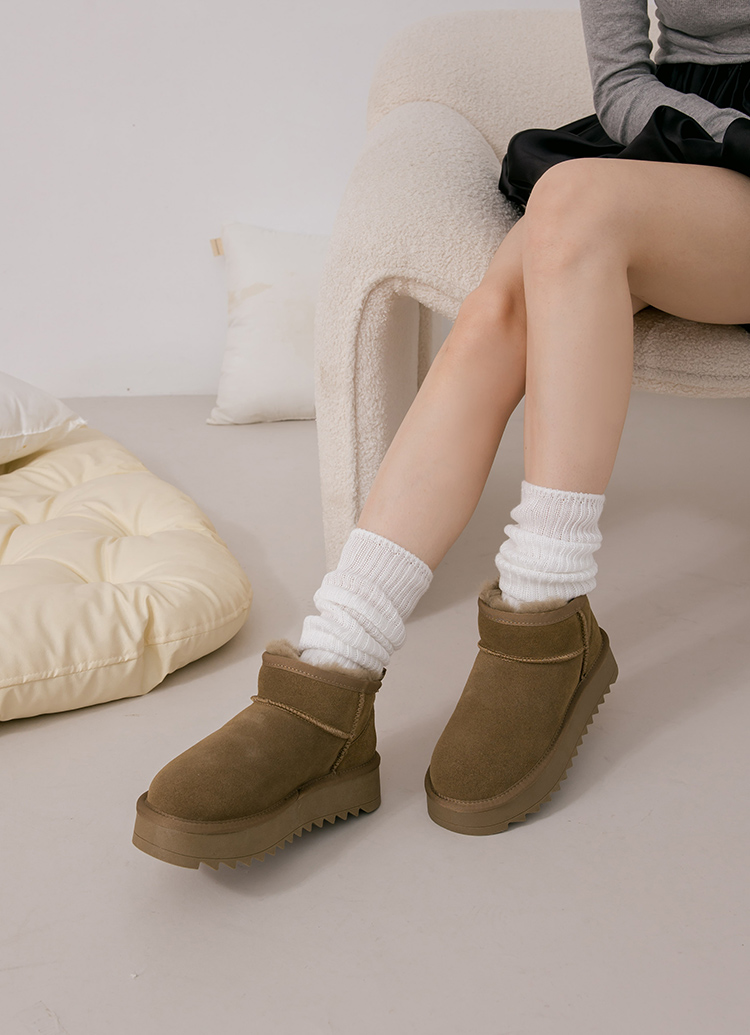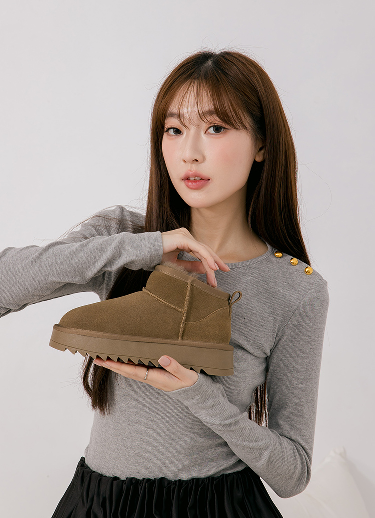 保暖神器暖絨牛麂皮短筒厚底雪靴 灰