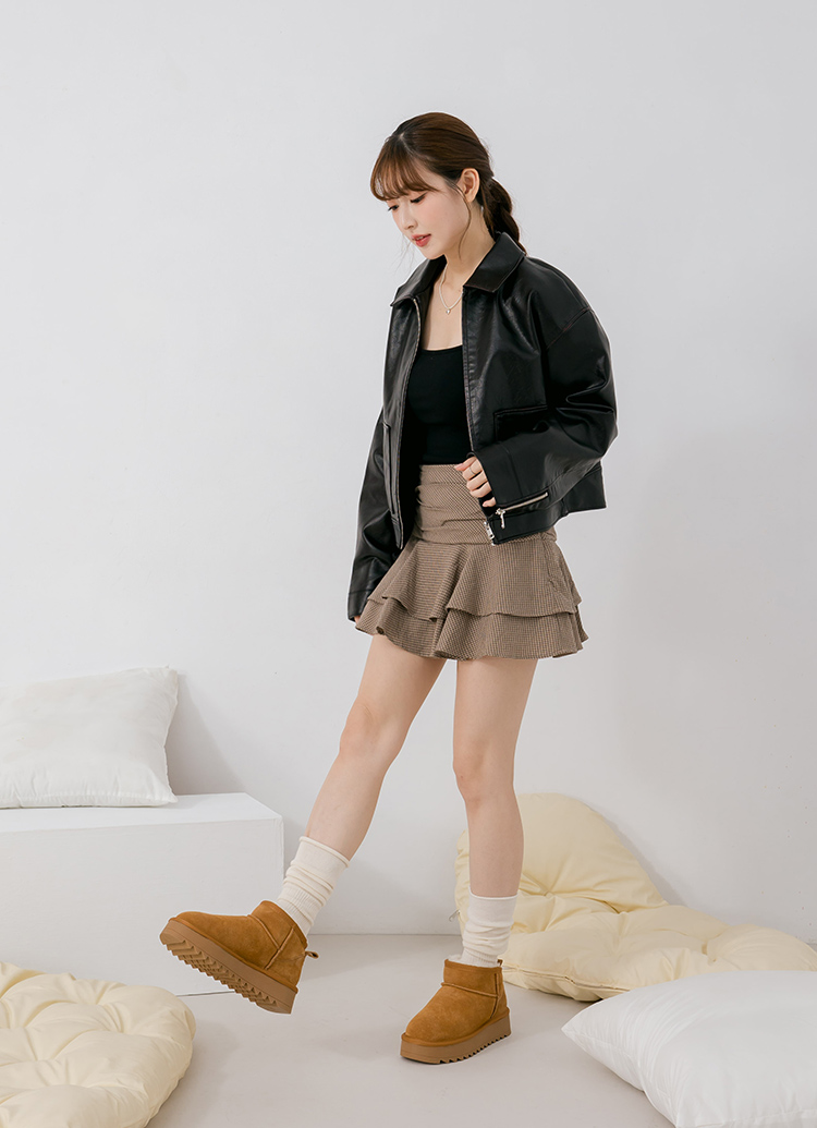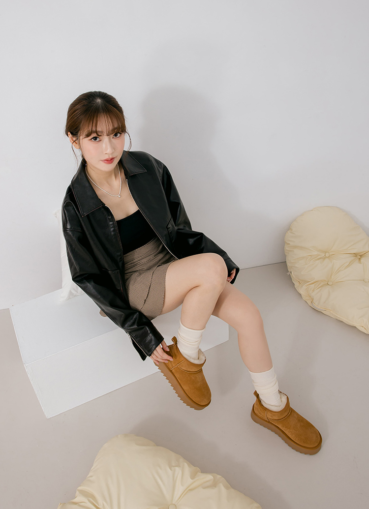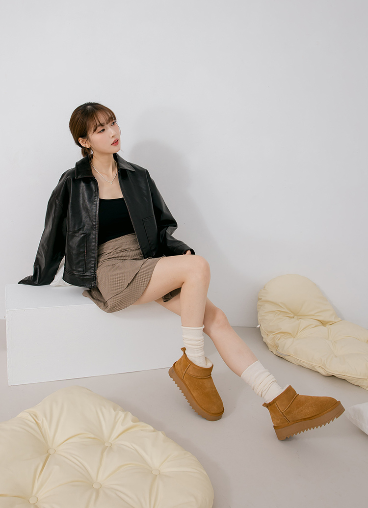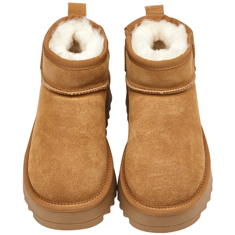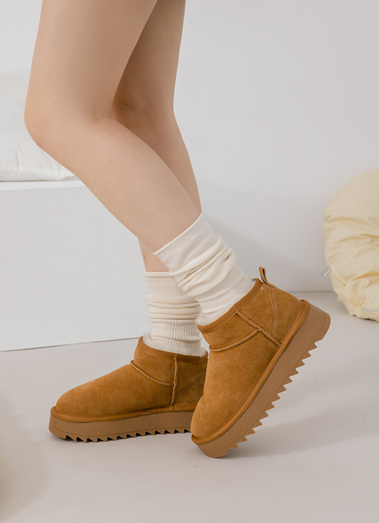 保暖神器暖絨牛麂皮短筒厚底雪靴 栗子