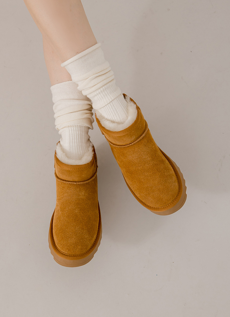 材質:柔軟牛二層皮+保暖羊毛&人造毛內裡+舒適仿毛鞋墊+耐磨橡膠底