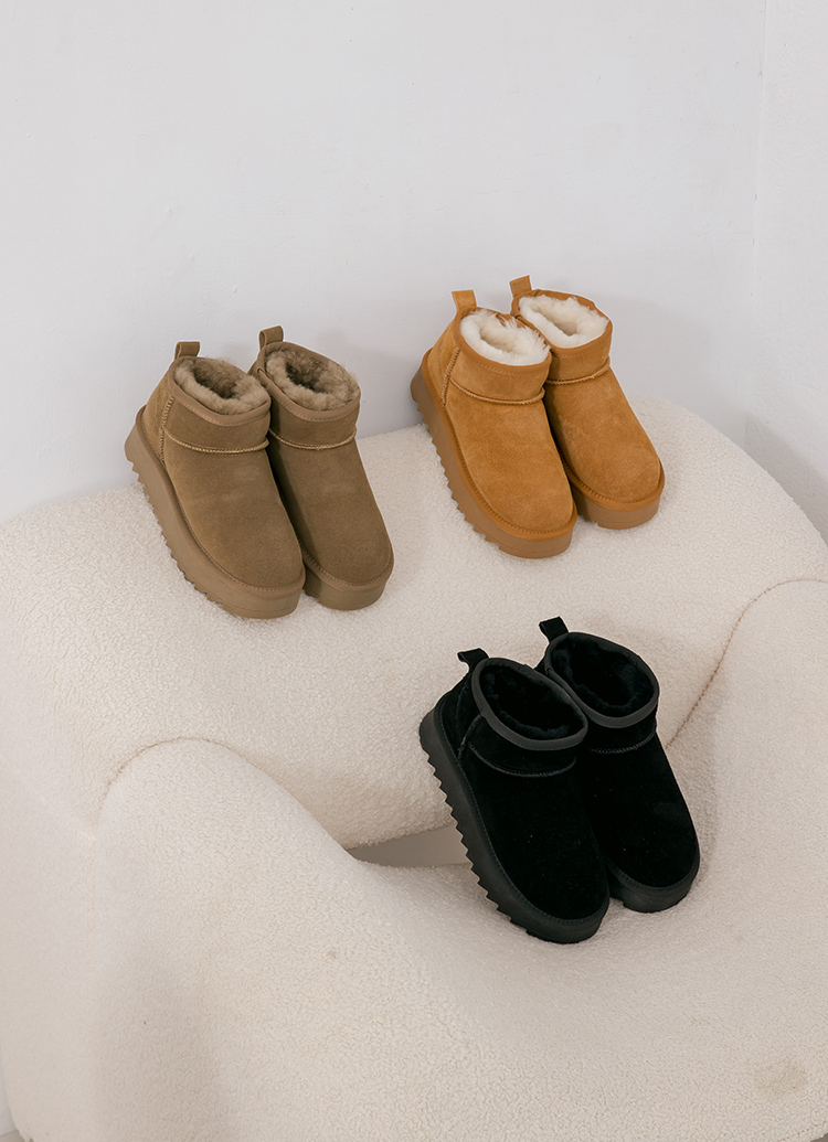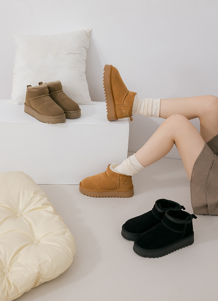 材質:柔軟牛二層皮+保暖羊毛&人造毛內裡+舒適仿毛鞋墊+耐磨橡膠底