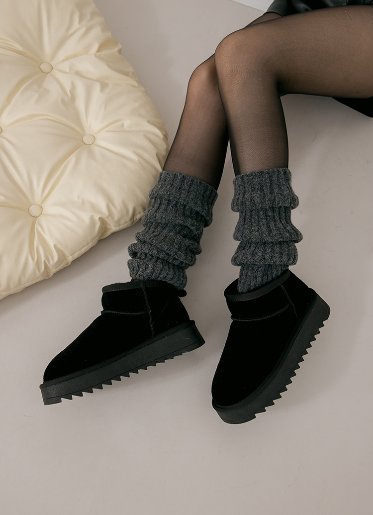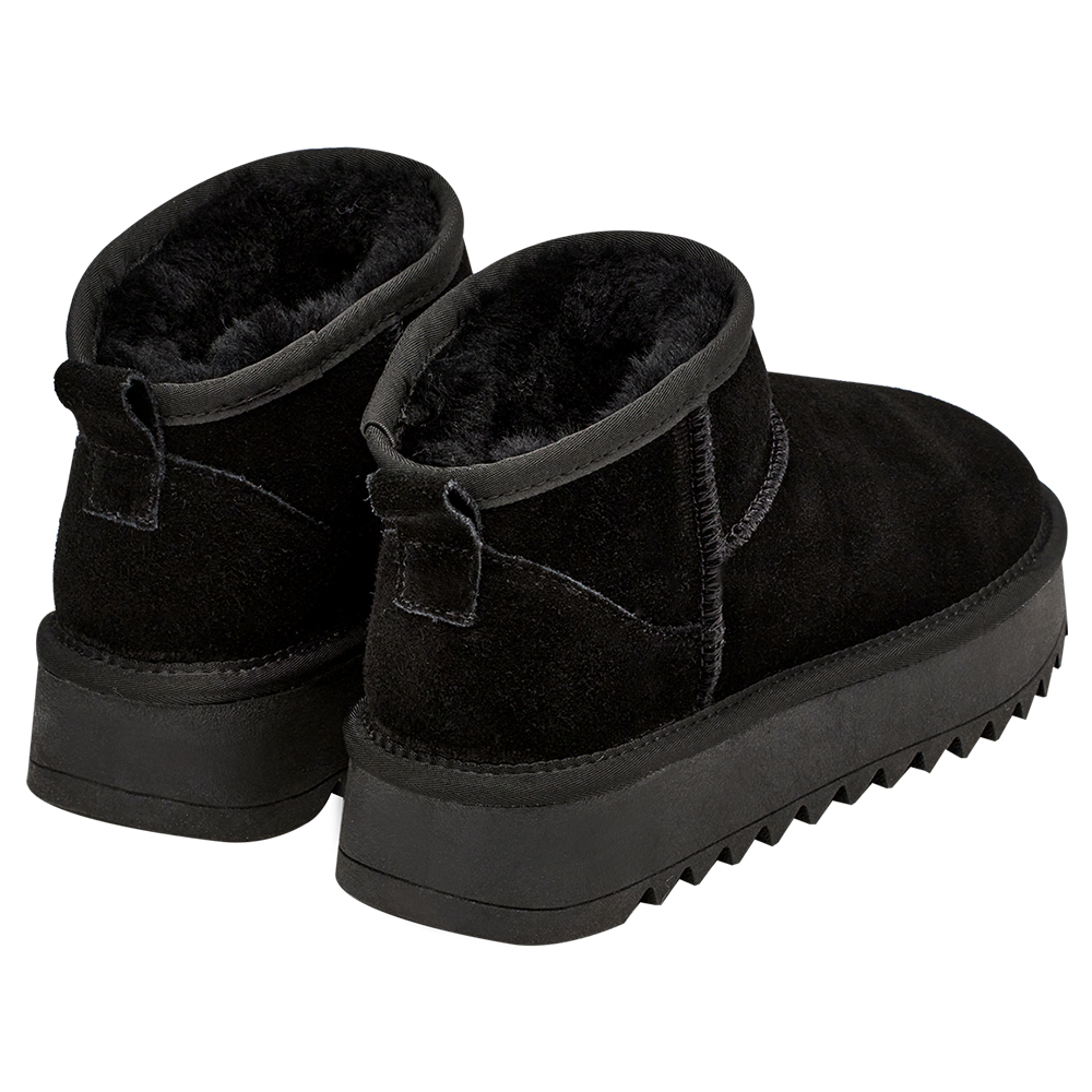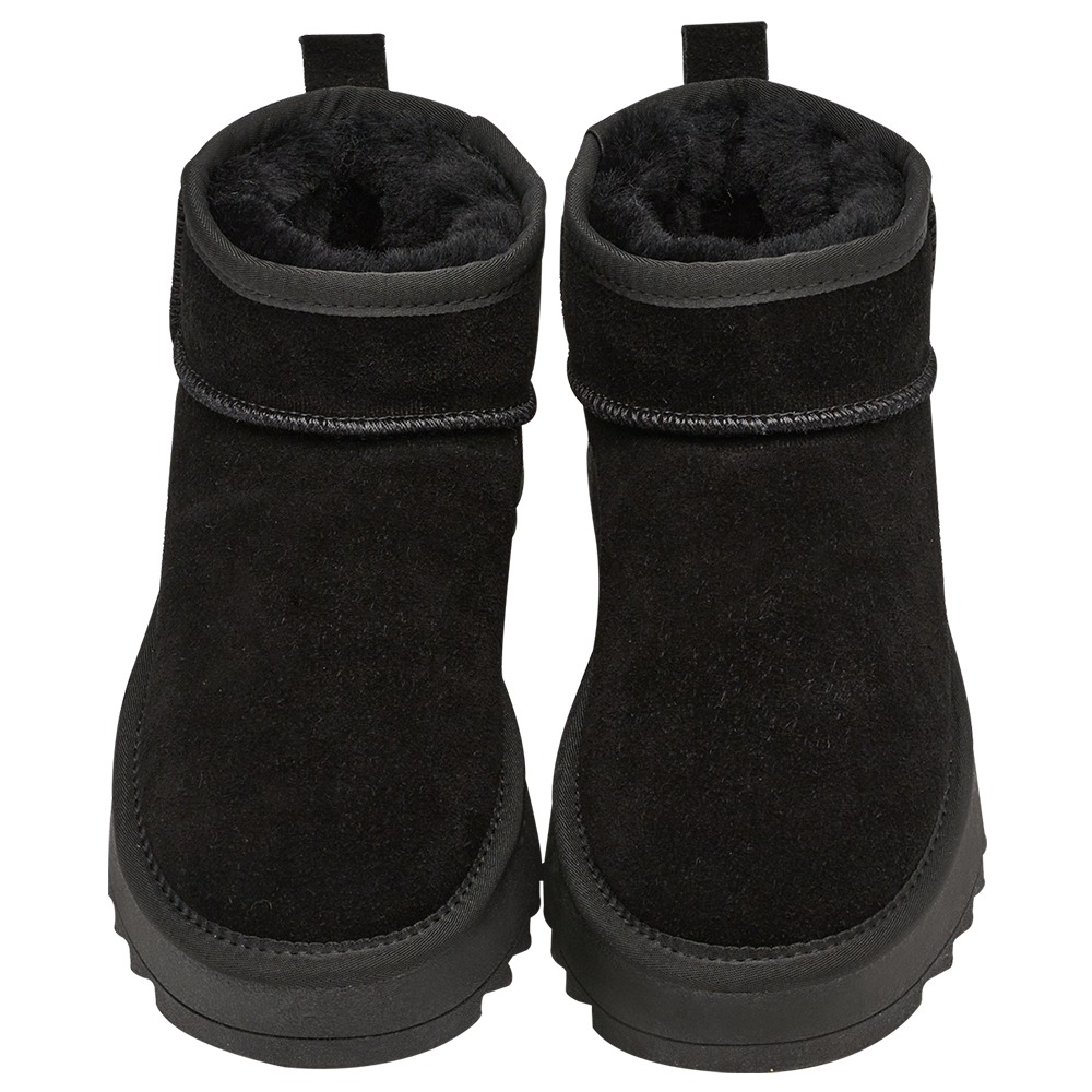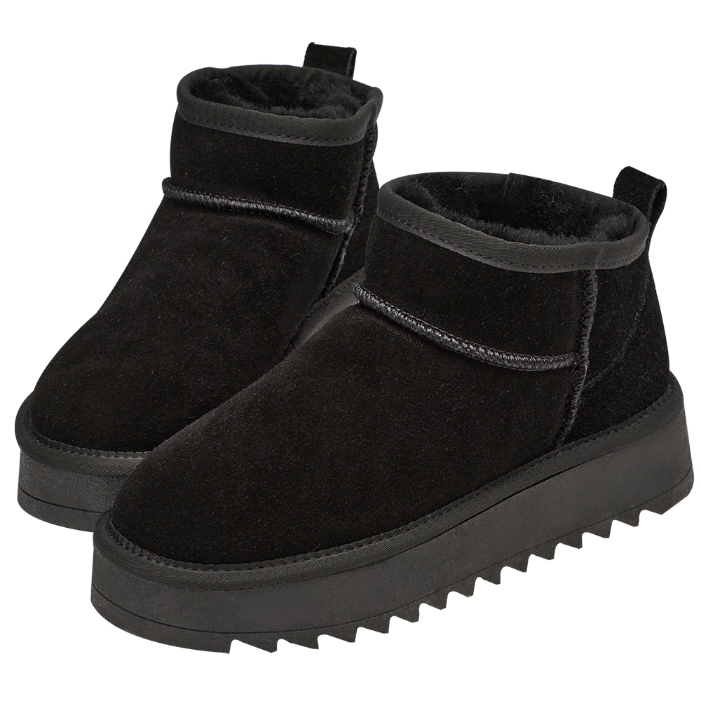 保暖神器暖絨牛麂皮短筒厚底雪靴 黑