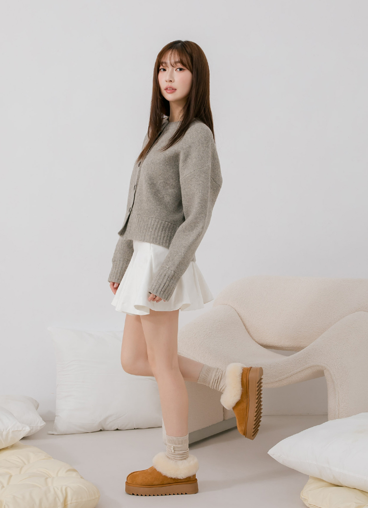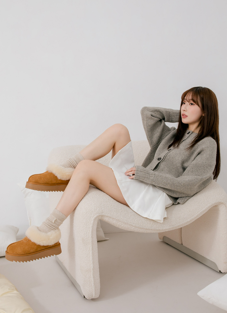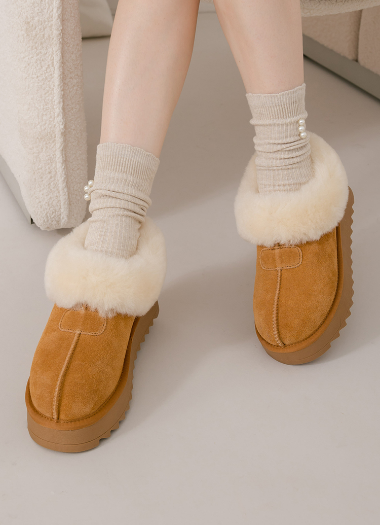 時髦雲朵暖絨牛麂皮短筒厚底雪靴 栗子
