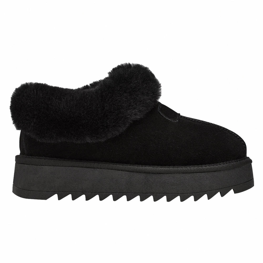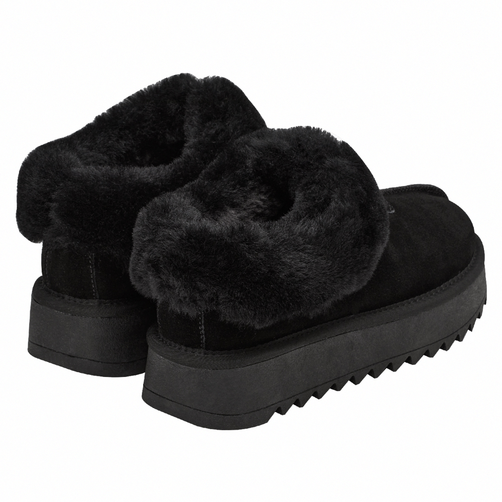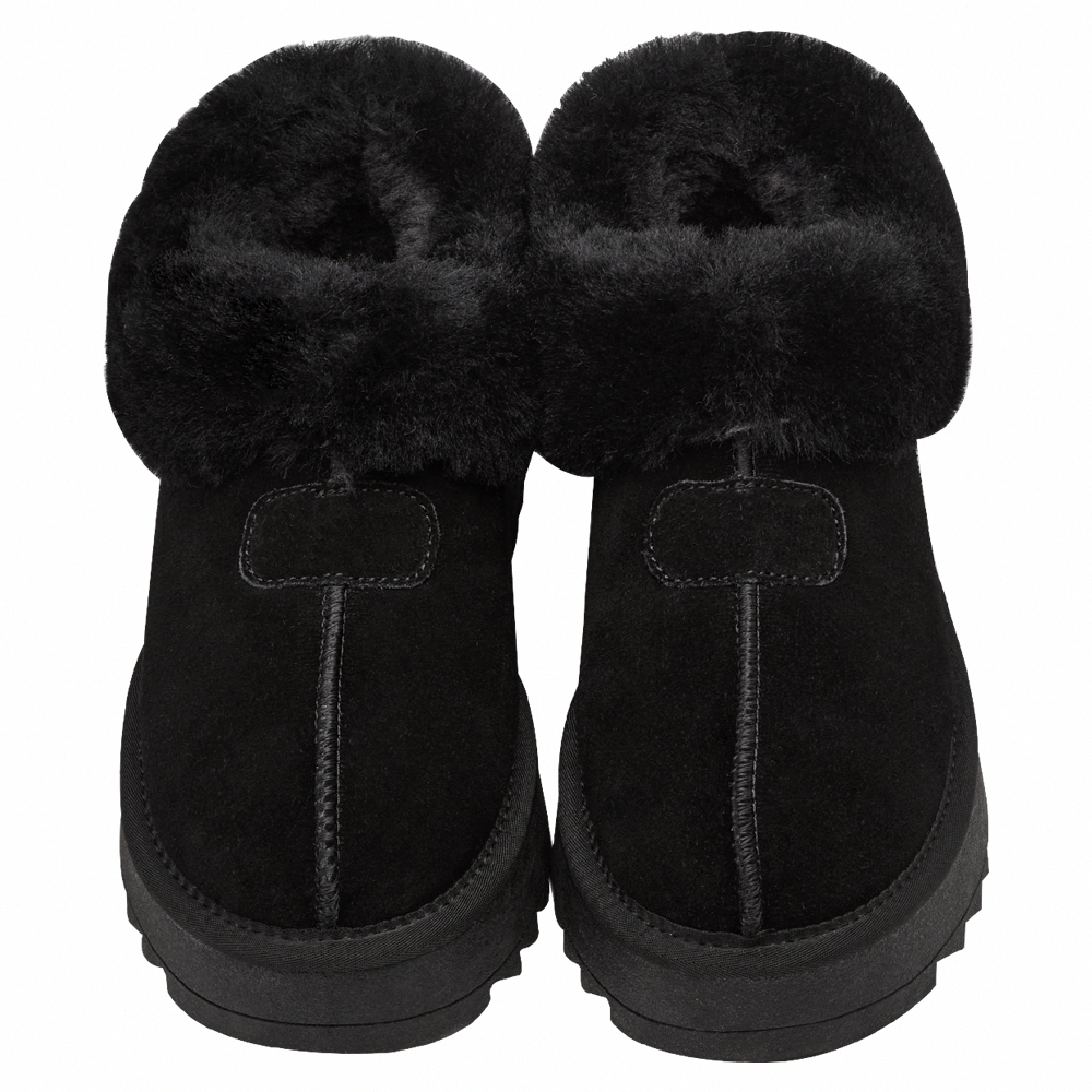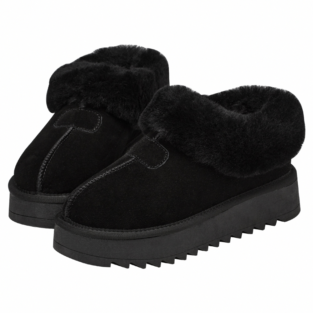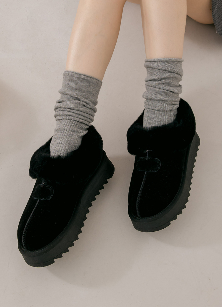 時髦雲朵暖絨牛麂皮短筒厚底雪靴 黑