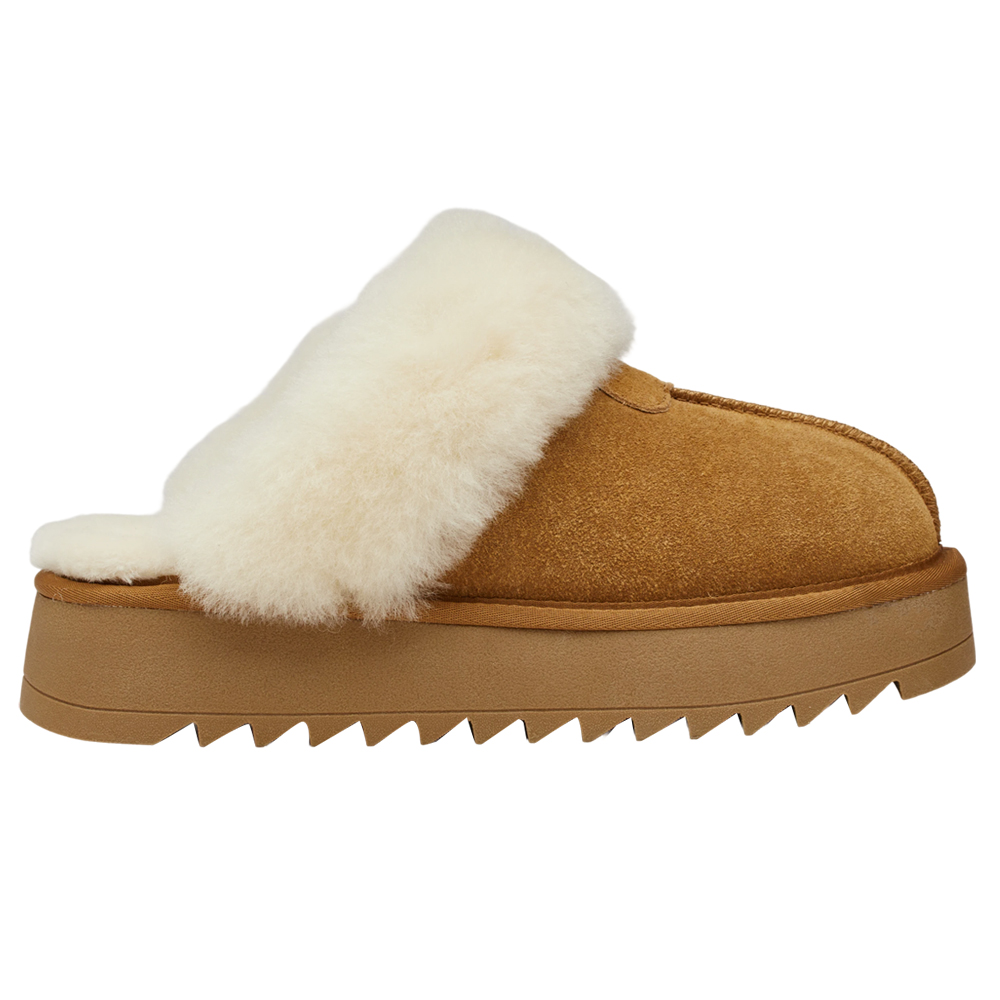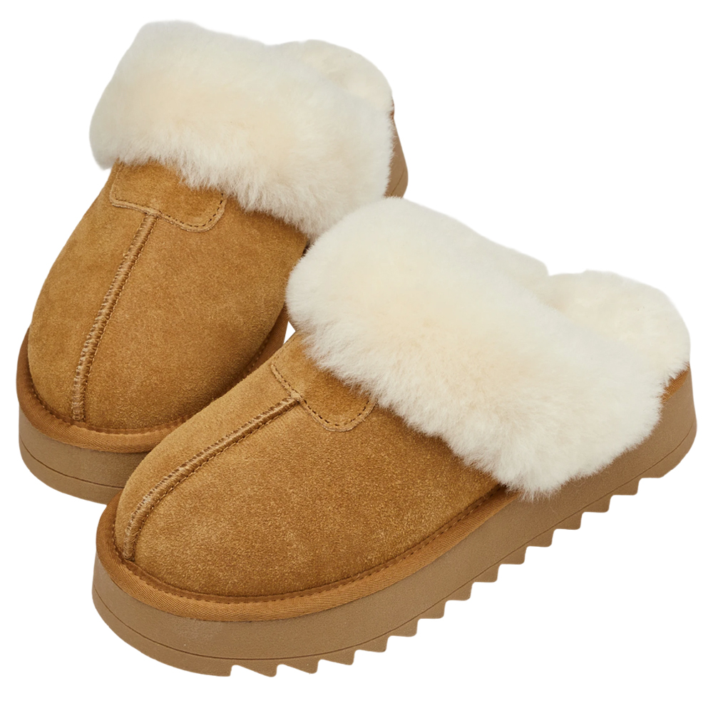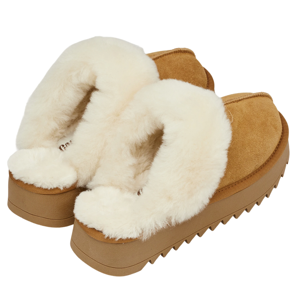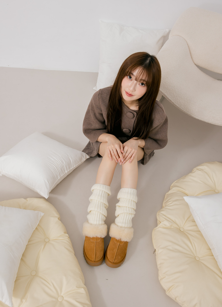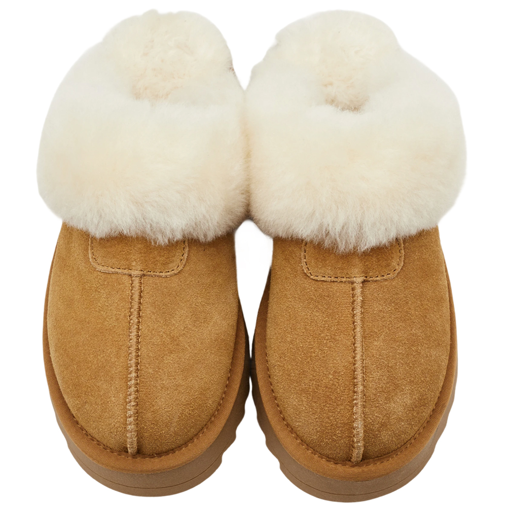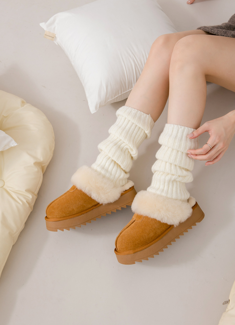 韓妞時尚牛麂皮羊毛厚底雪地拖鞋 栗子