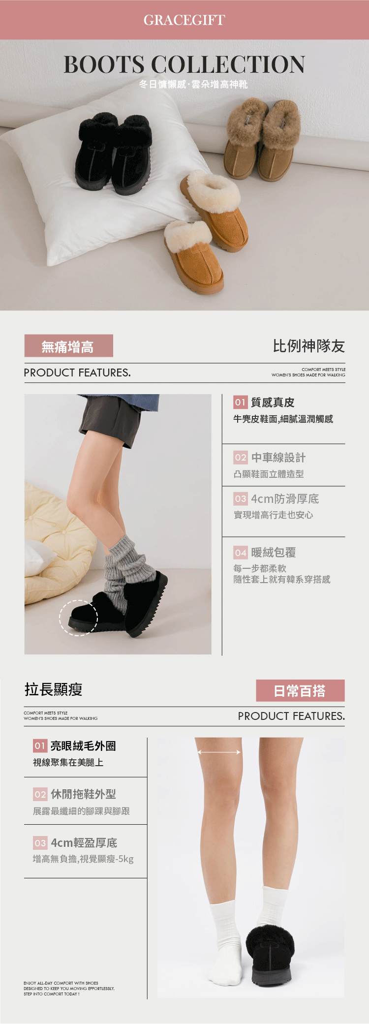 加厚羊毛滾邊設計,溫柔包覆腳背