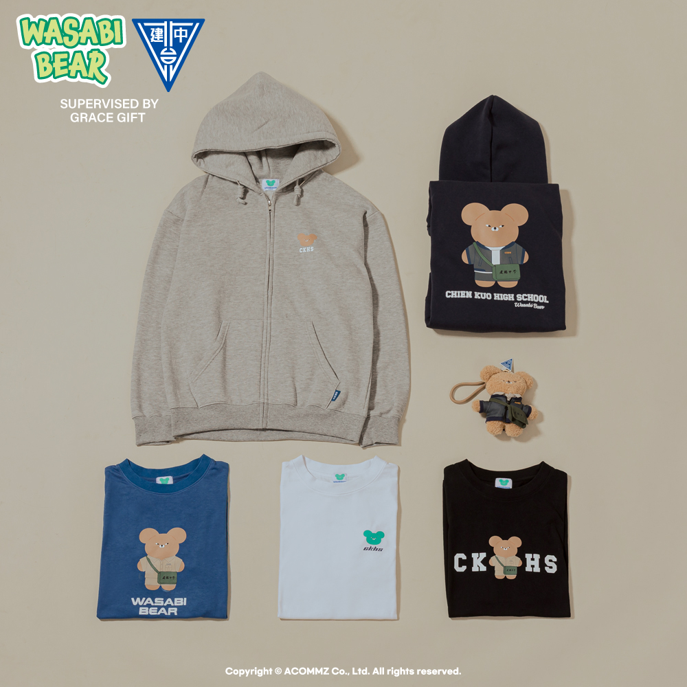 首頁 > 授權聯名 >Wasabi Bear × 建國中學127th-MIT手工職人內刷毛連帽休閒外套 灰