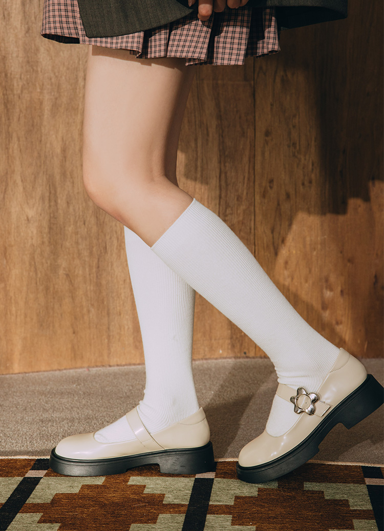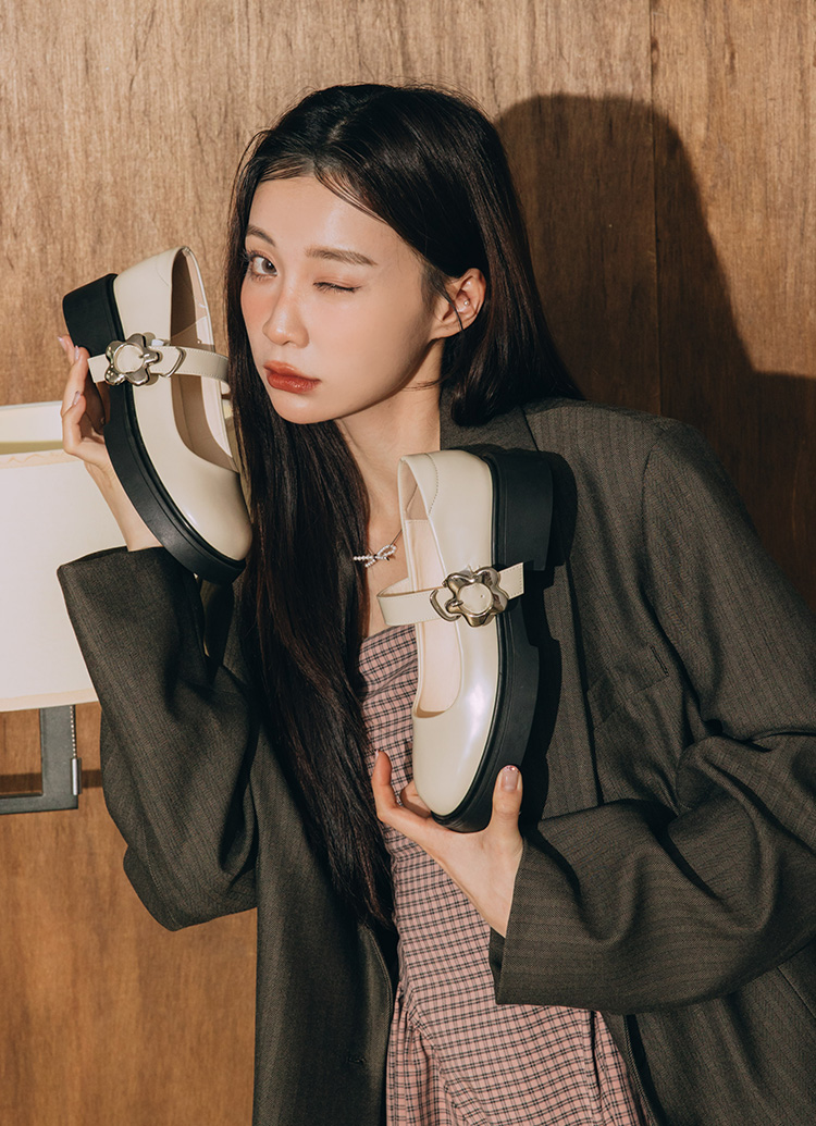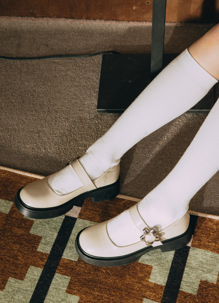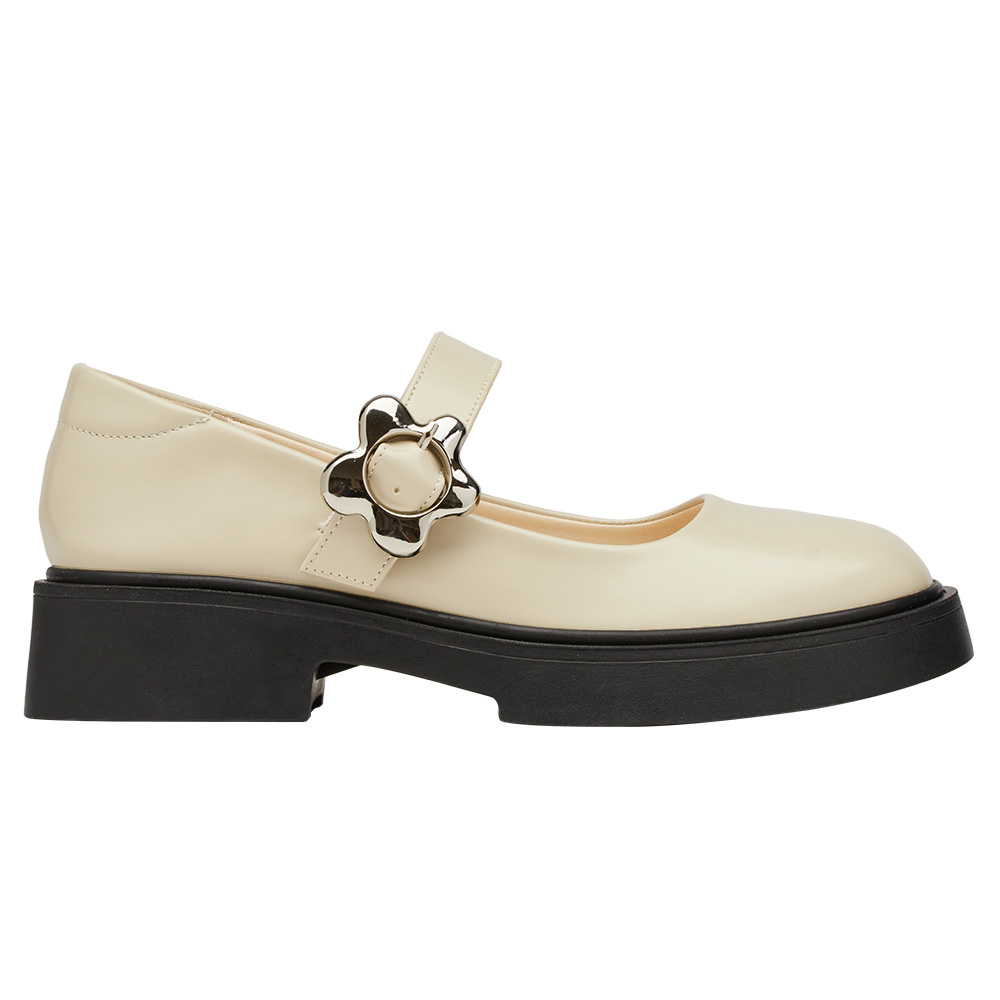 首頁 >流行趨勢 >甜酷少女金屬小花扣輕量瑪莉珍鞋 米白