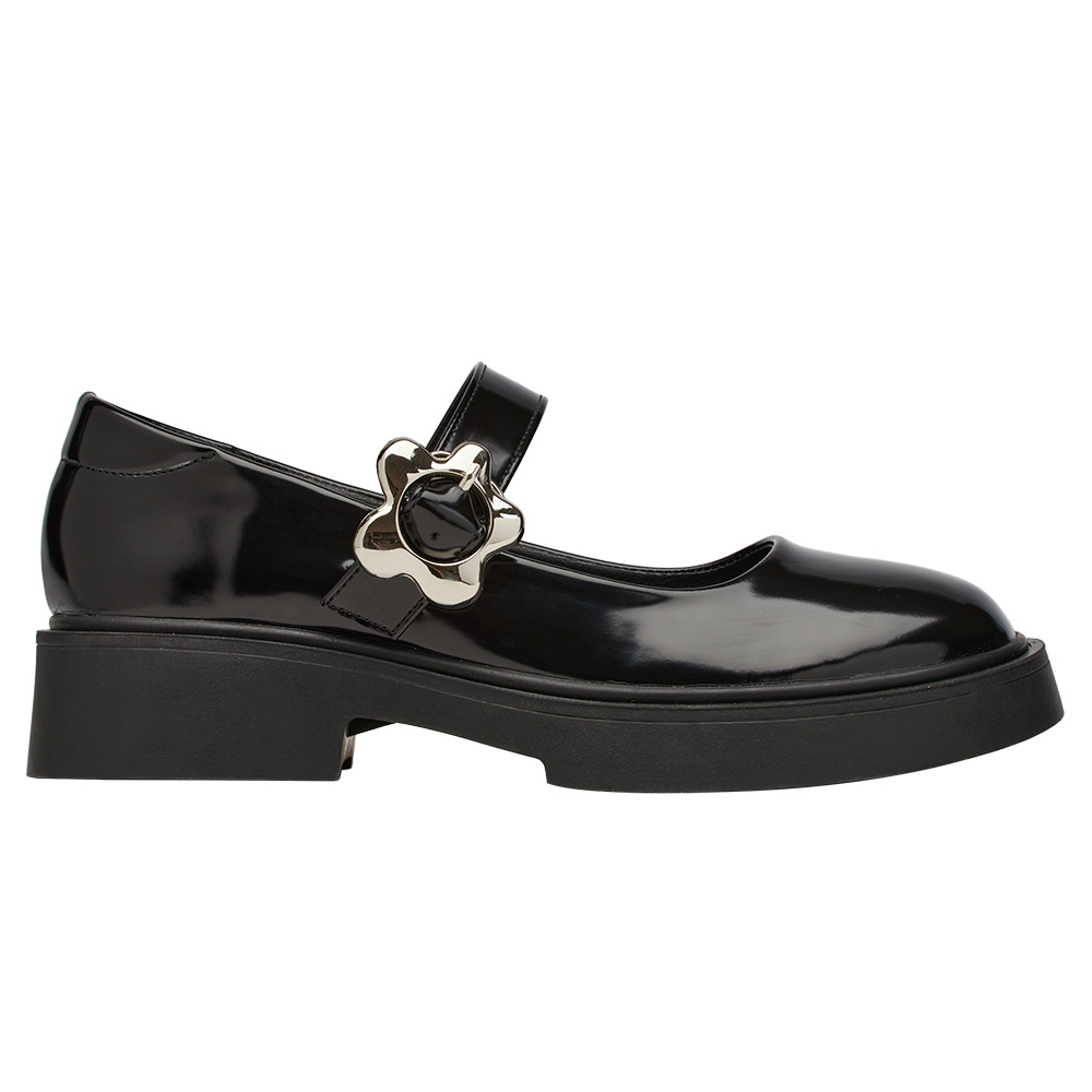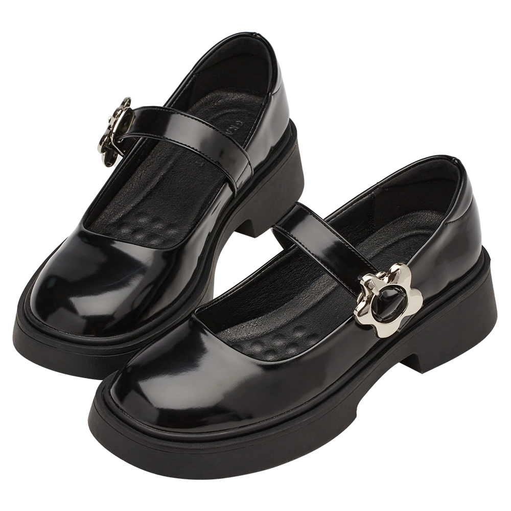 首頁 > 女鞋 >甜酷少女金屬小花扣輕量瑪莉珍鞋 黑漆