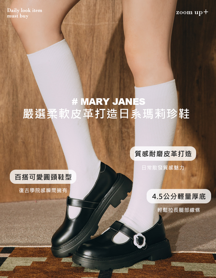 圓頭T字瑪莉珍鞋型,保留經典學院感