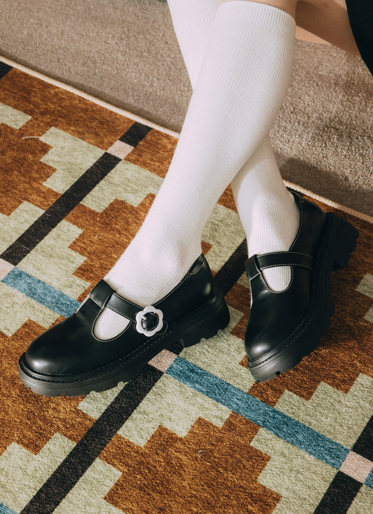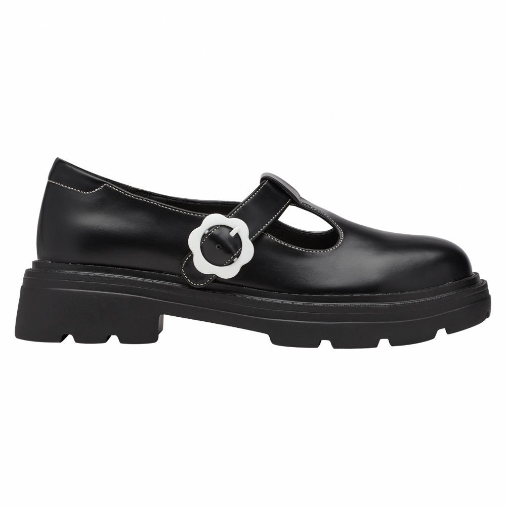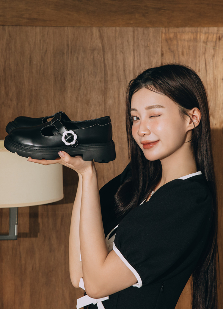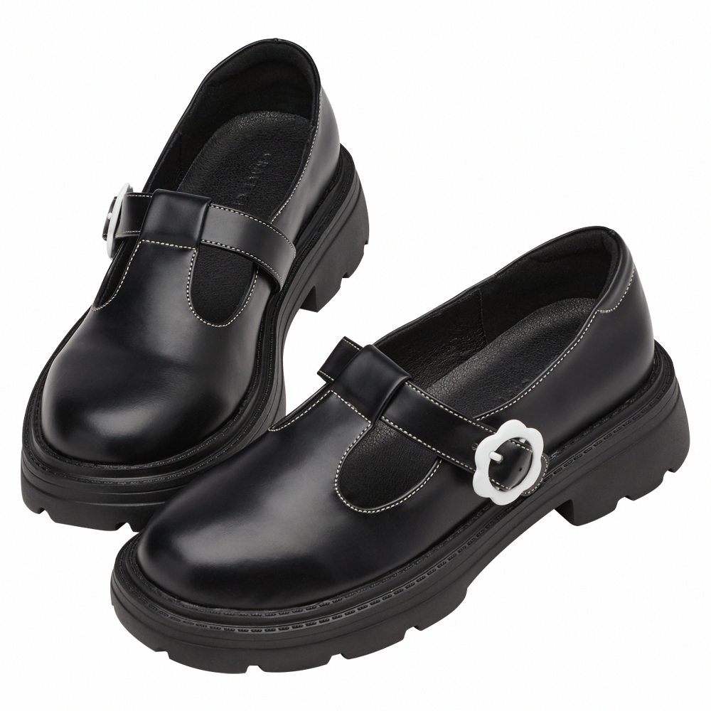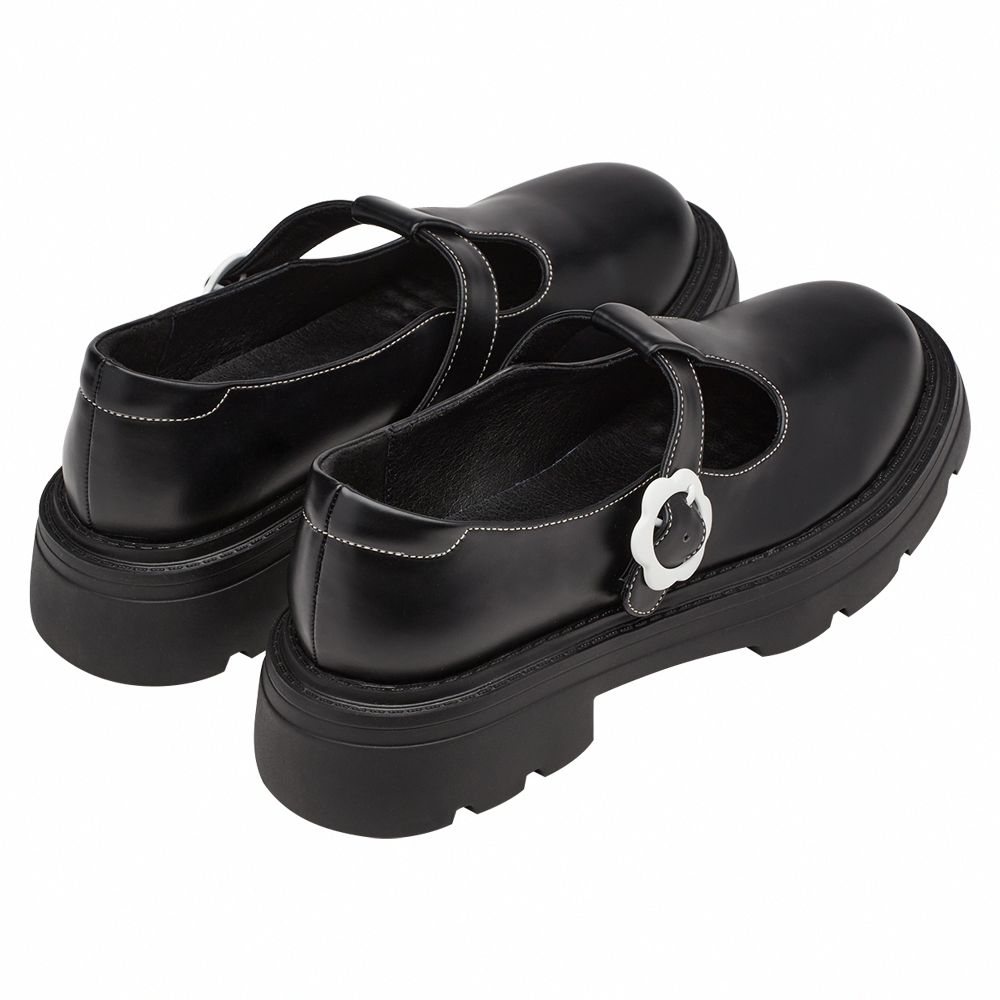 日系可愛小花扣T字輕量瑪莉珍鞋 黑