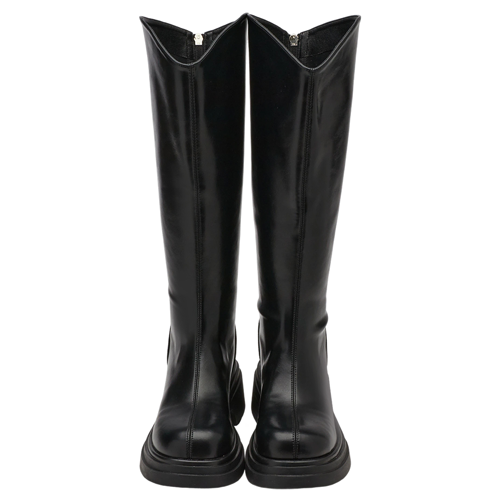 首頁 > 女鞋 > 靴子全系列 >V口顯瘦(加寬筒圍)後拉圓頭厚底長靴 黑