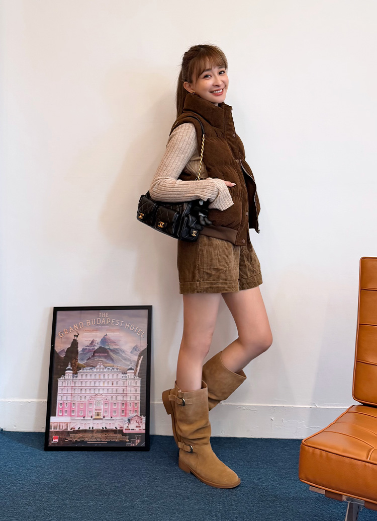 慵懶隨性麂皮雙層皮帶扣堆堆長靴 駝