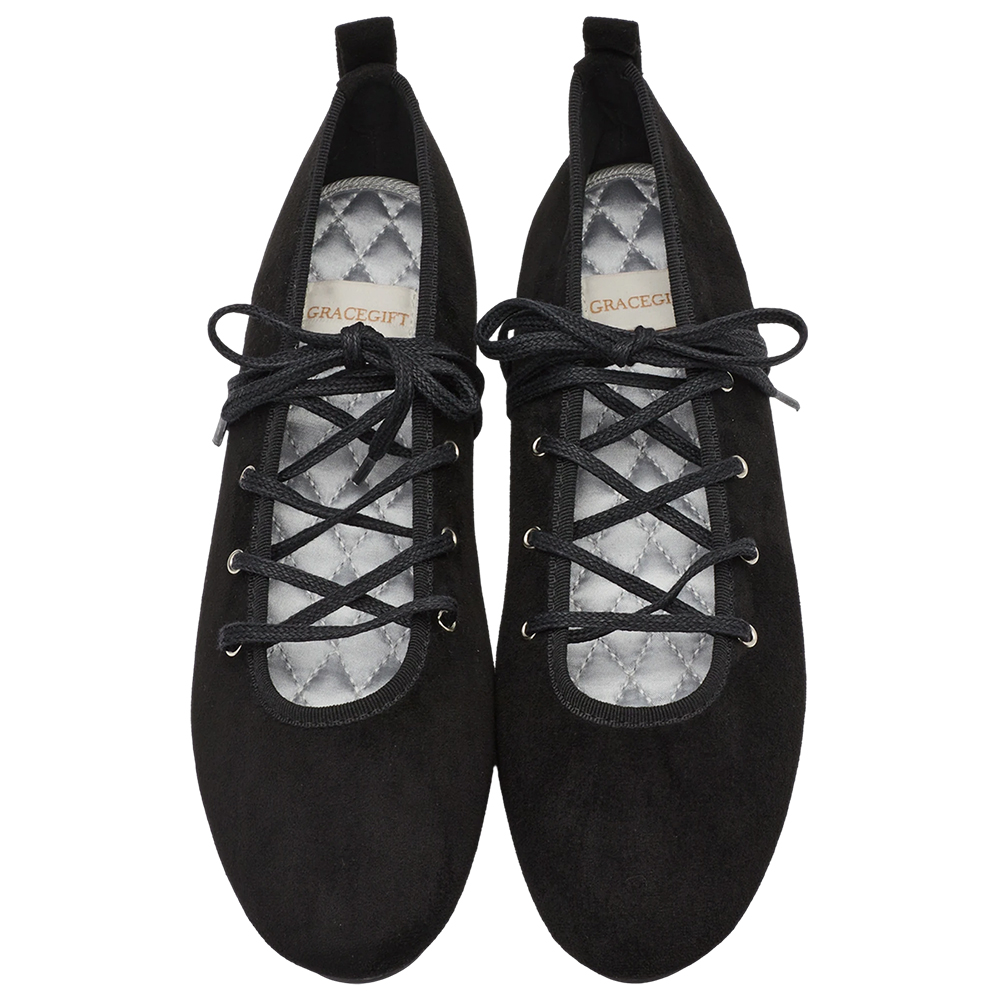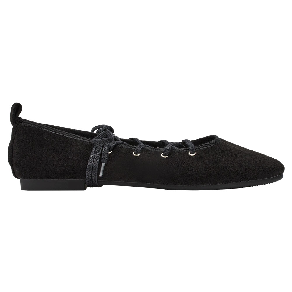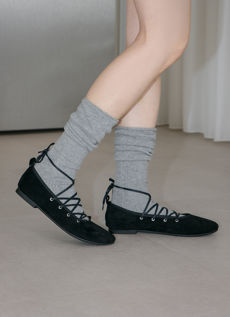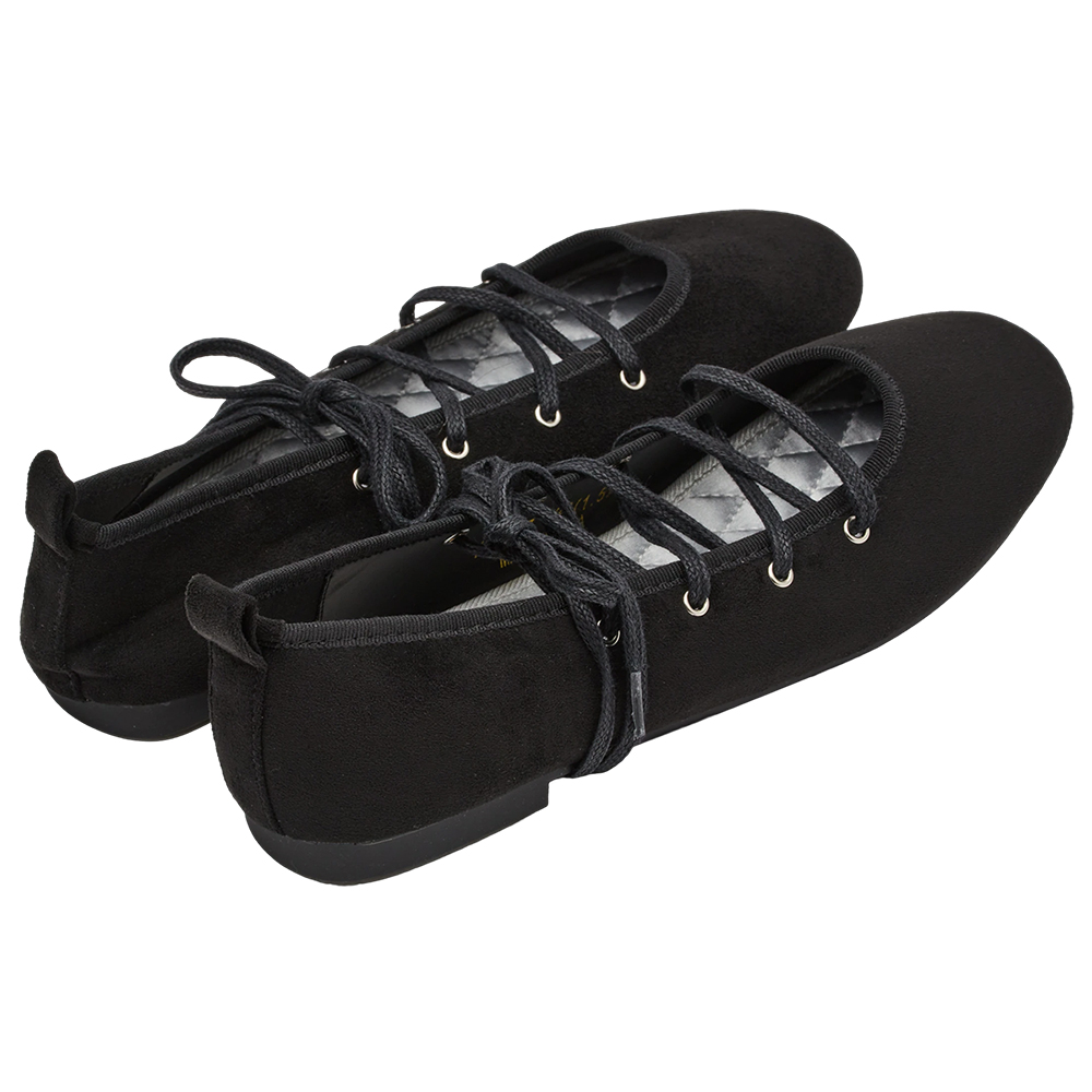 可可芭蕾絨面交叉綁繩芭蕾舞平底鞋 黑
