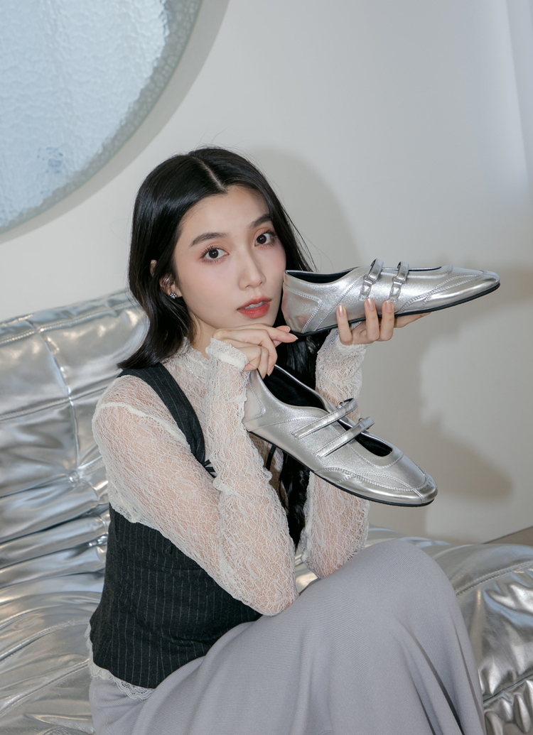 輕盈革命魔鬼氈雙帶內增高瑪莉珍運動鞋 銀