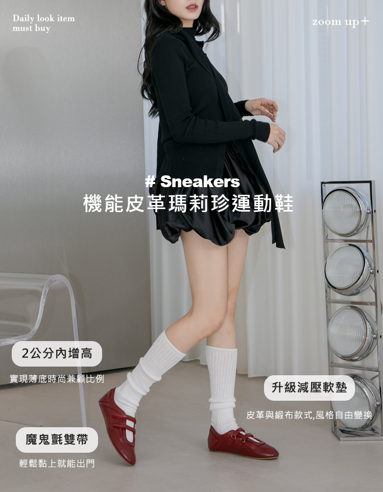 輕盈革命魔鬼氈雙帶內增高瑪莉珍運動鞋 紅