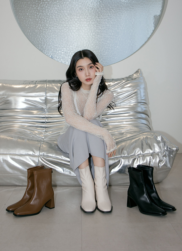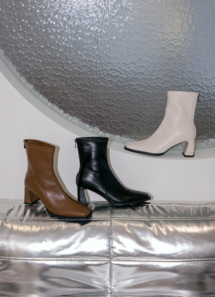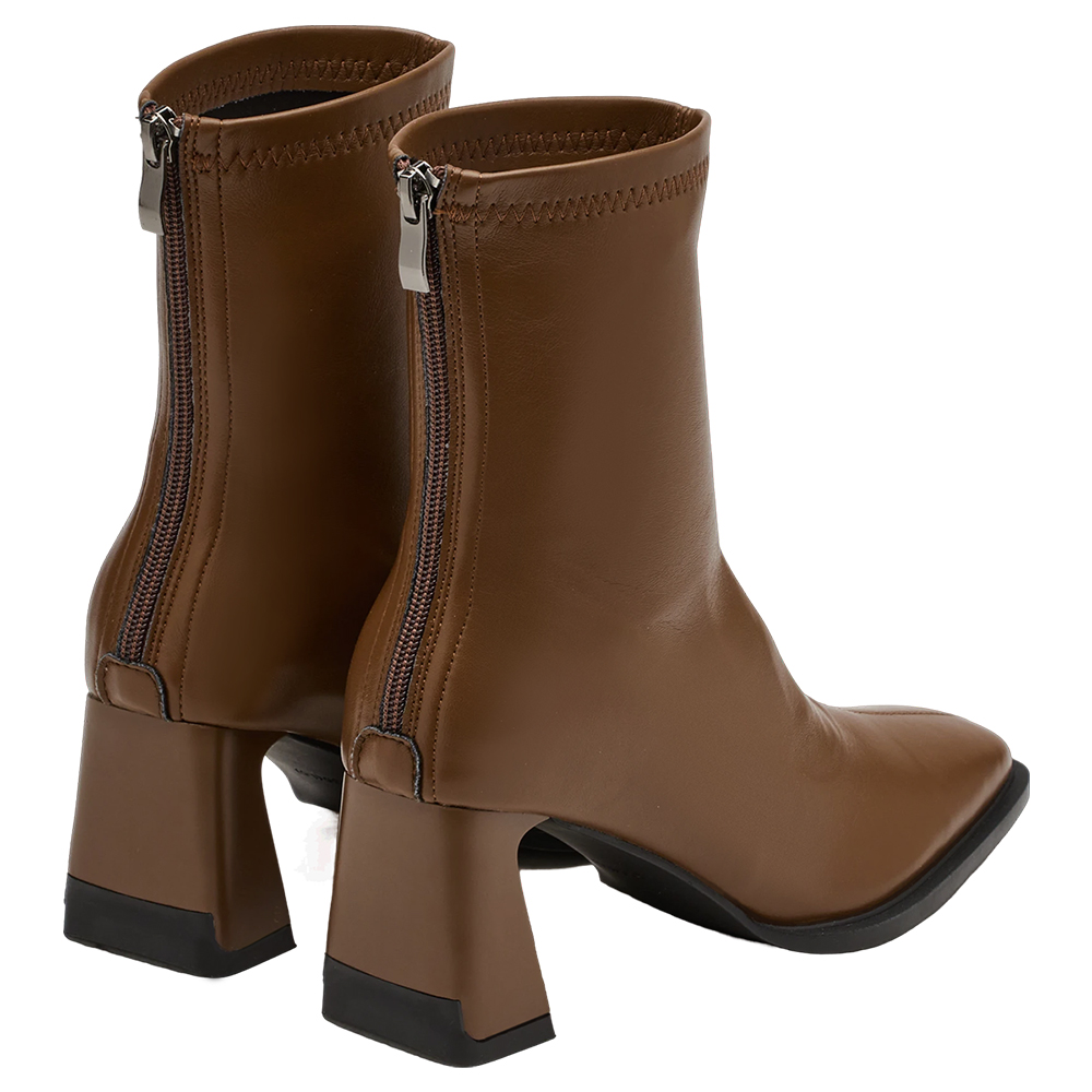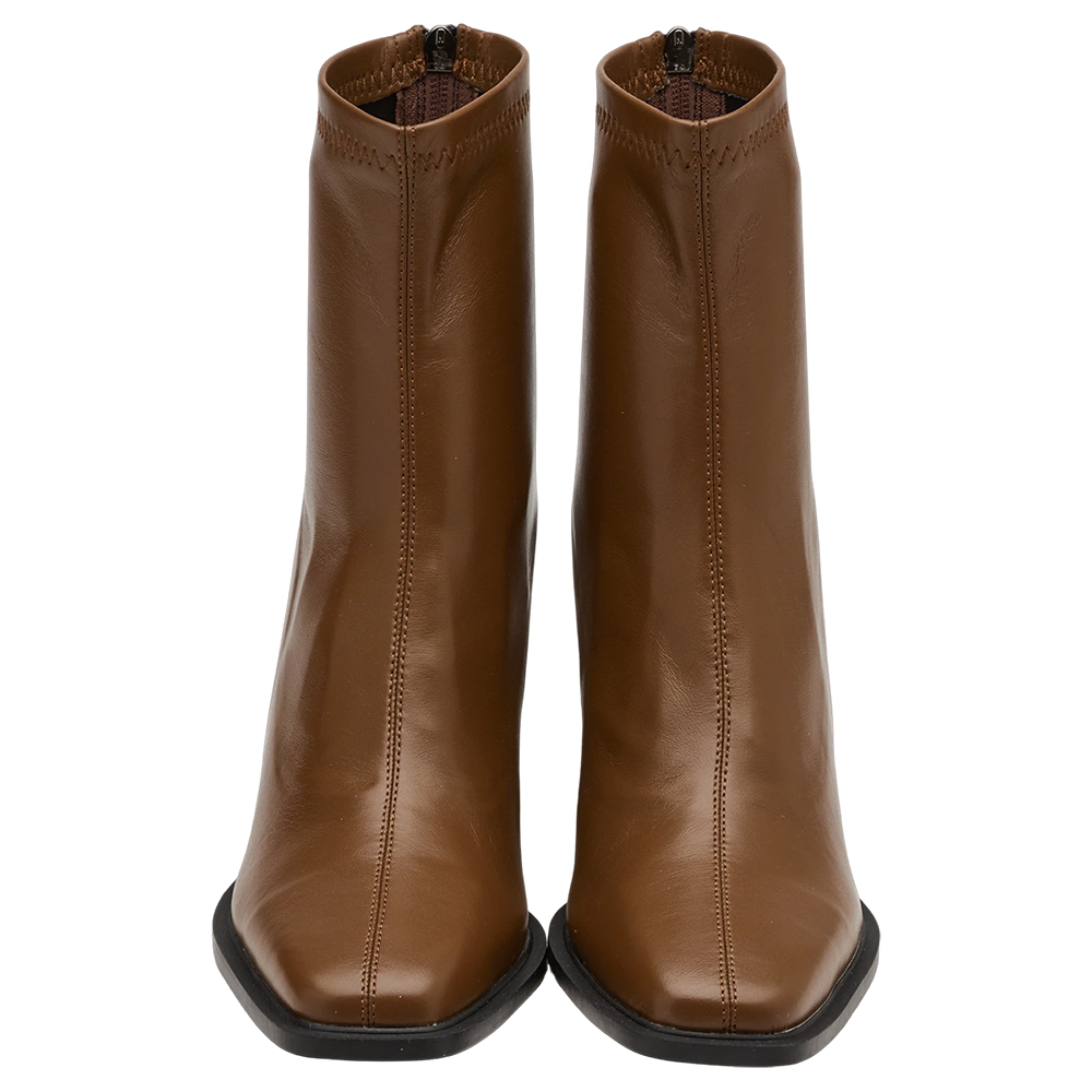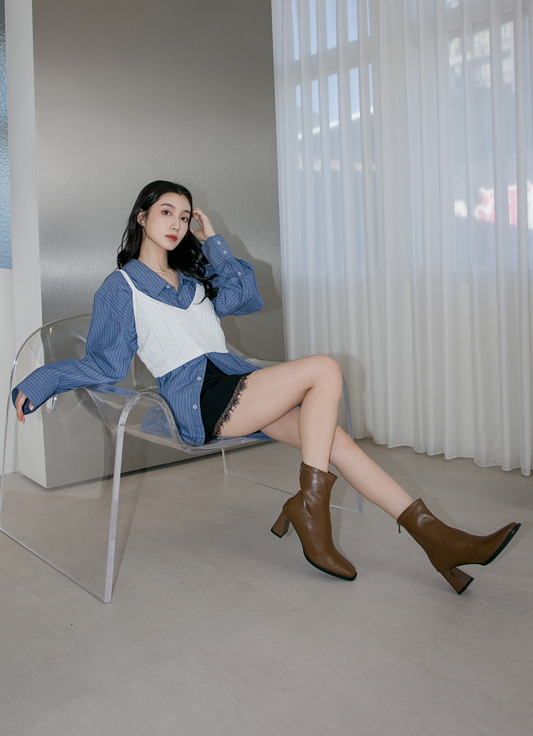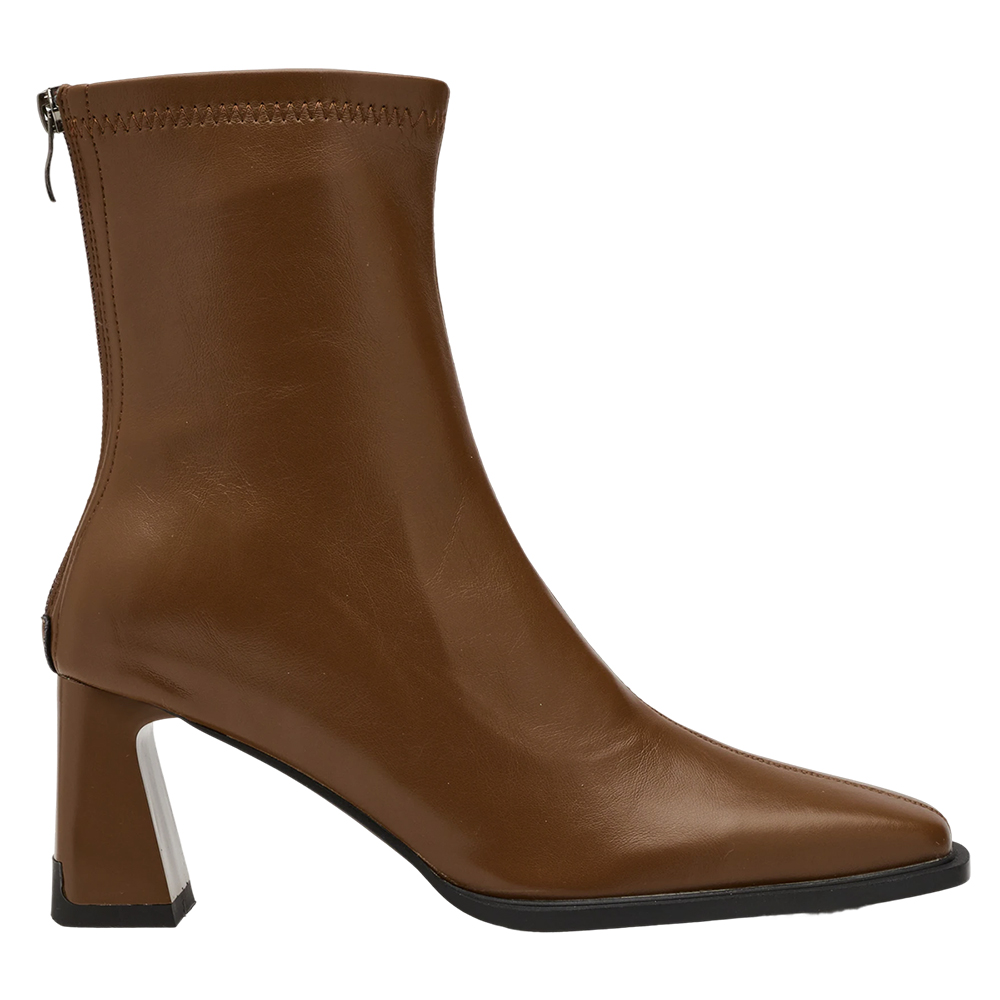時髦歐膩方頭後拉鍊車線高跟襪靴 咖