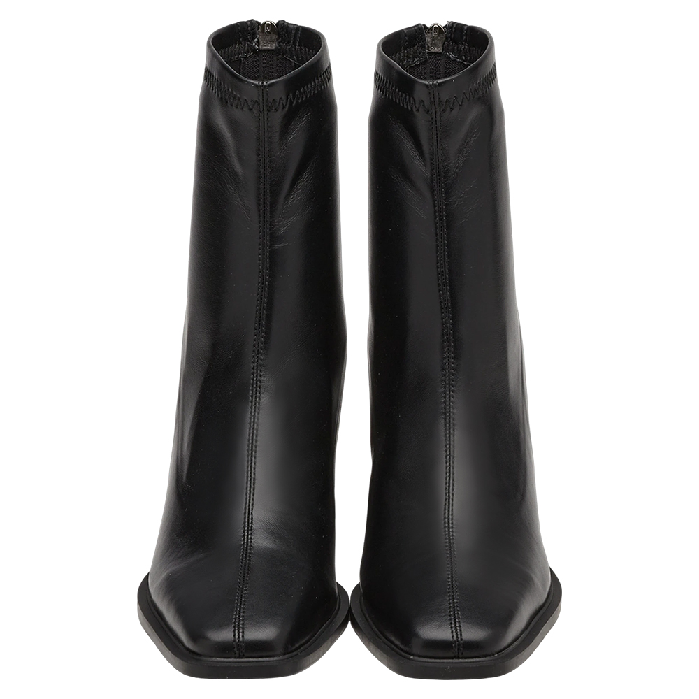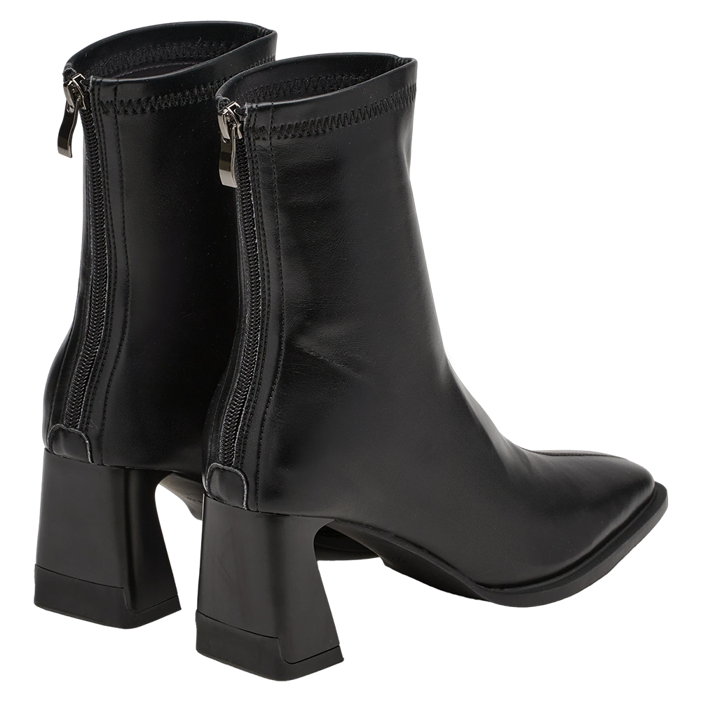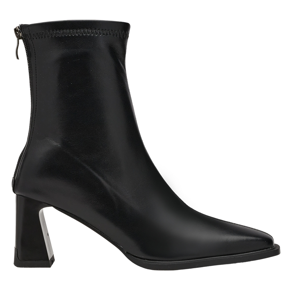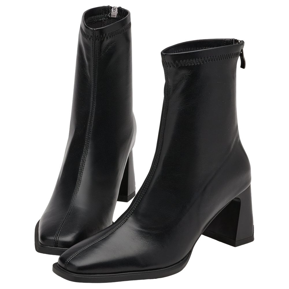 時髦歐膩方頭後拉鍊車線高跟襪靴 黑