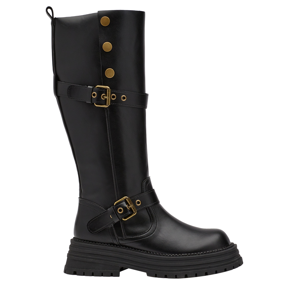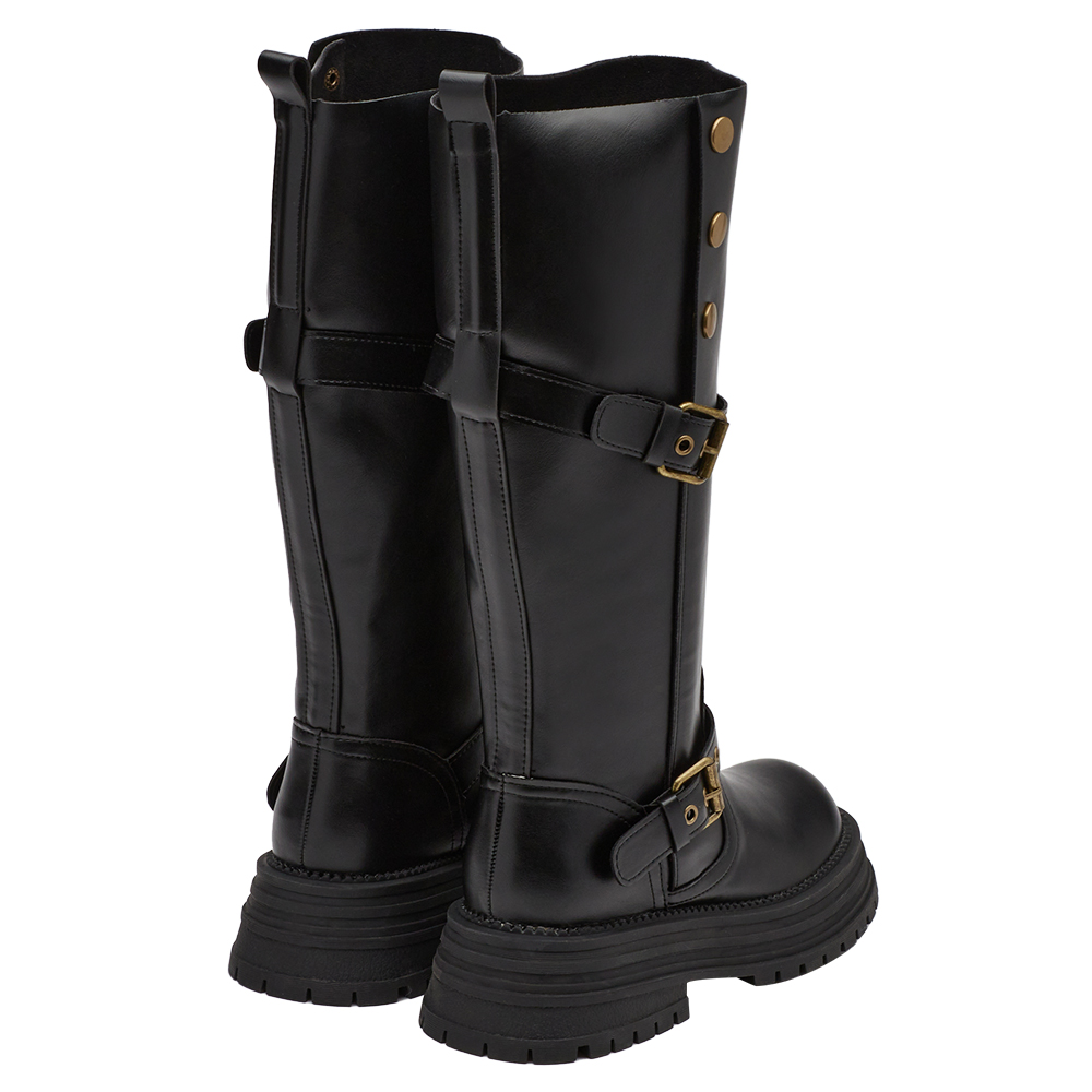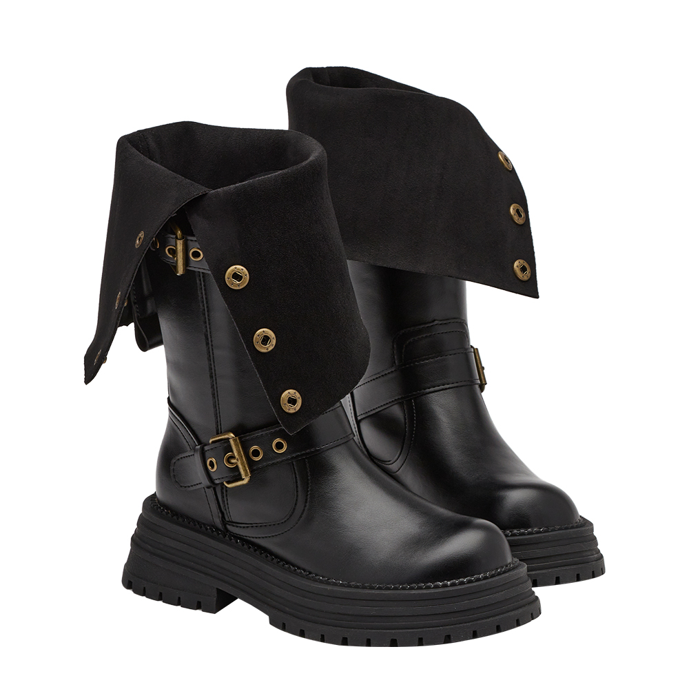 聖水街頭2WAY反折皮帶卯釘顯瘦長靴 黑