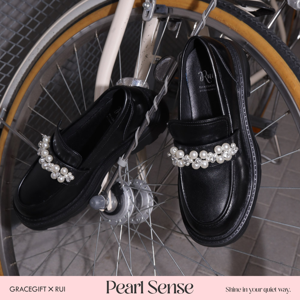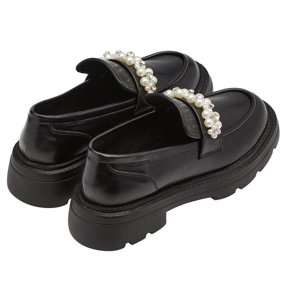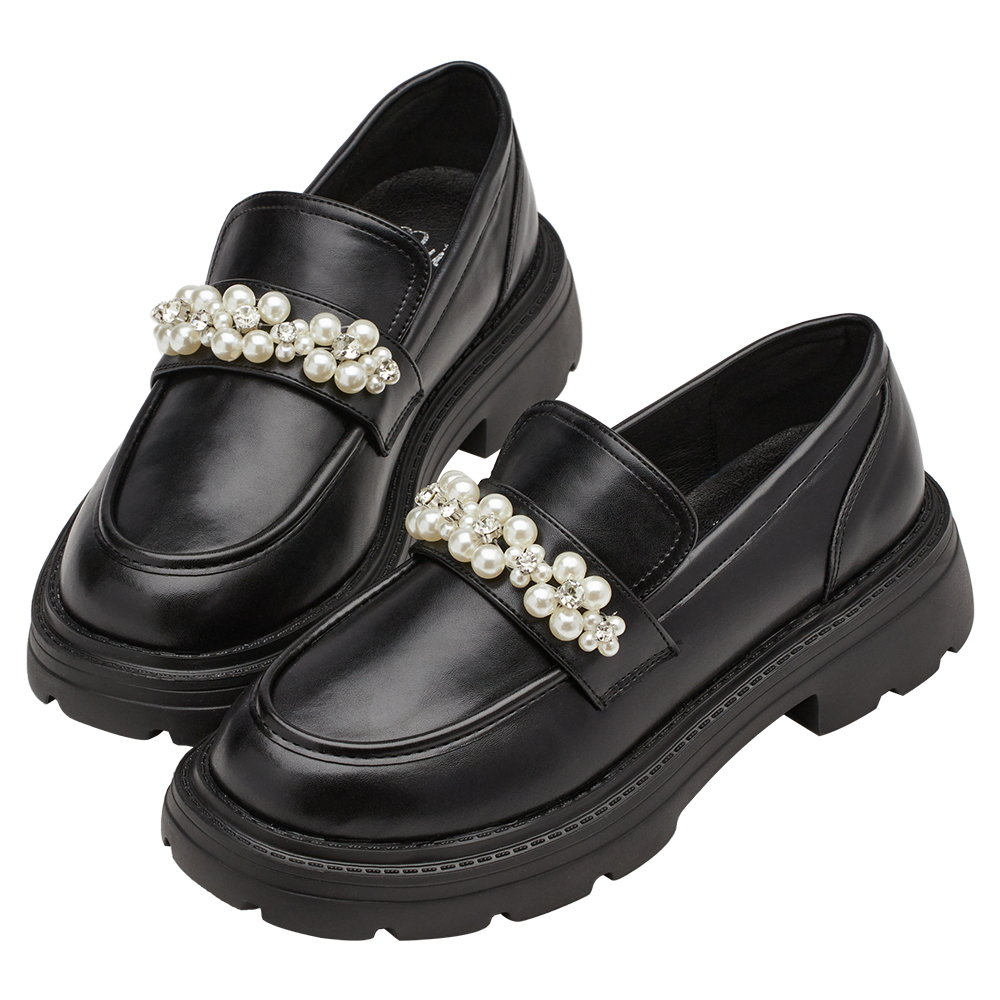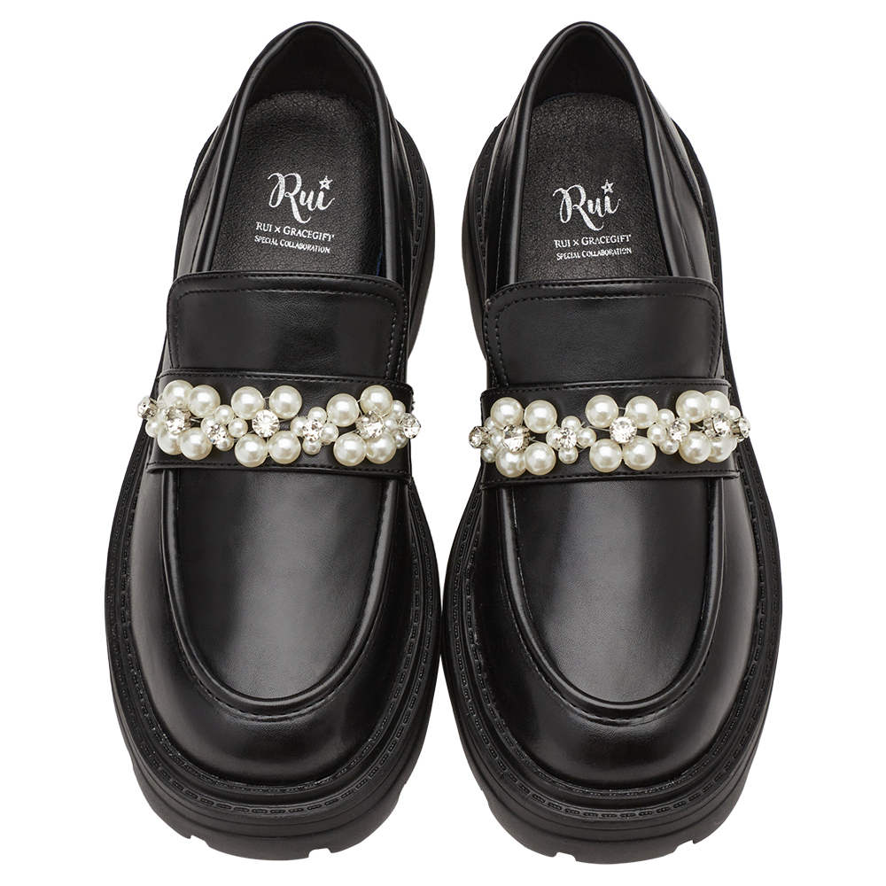 小貓聯名-奢耀珍珠水鑽輕量厚底樂福鞋 黑
