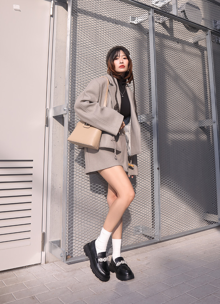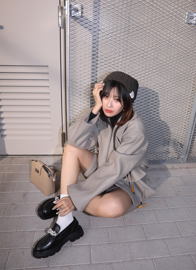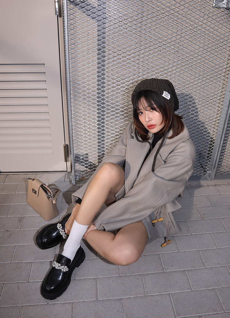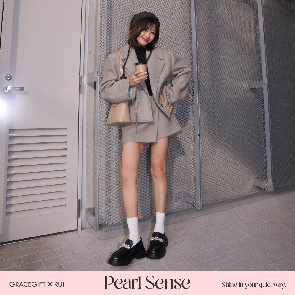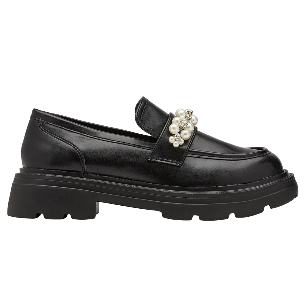 小貓聯名-奢耀珍珠水鑽輕量厚底樂福鞋 黑