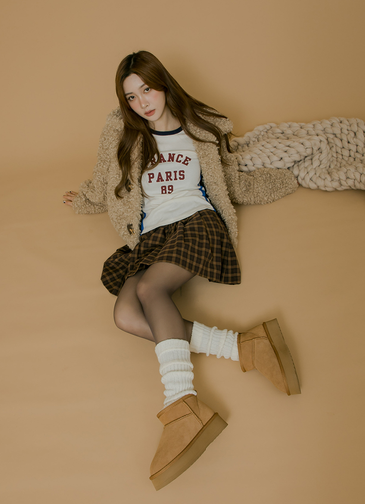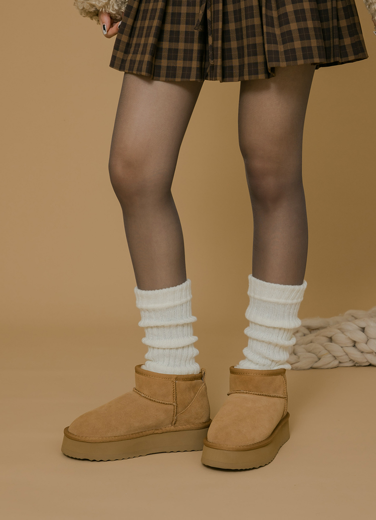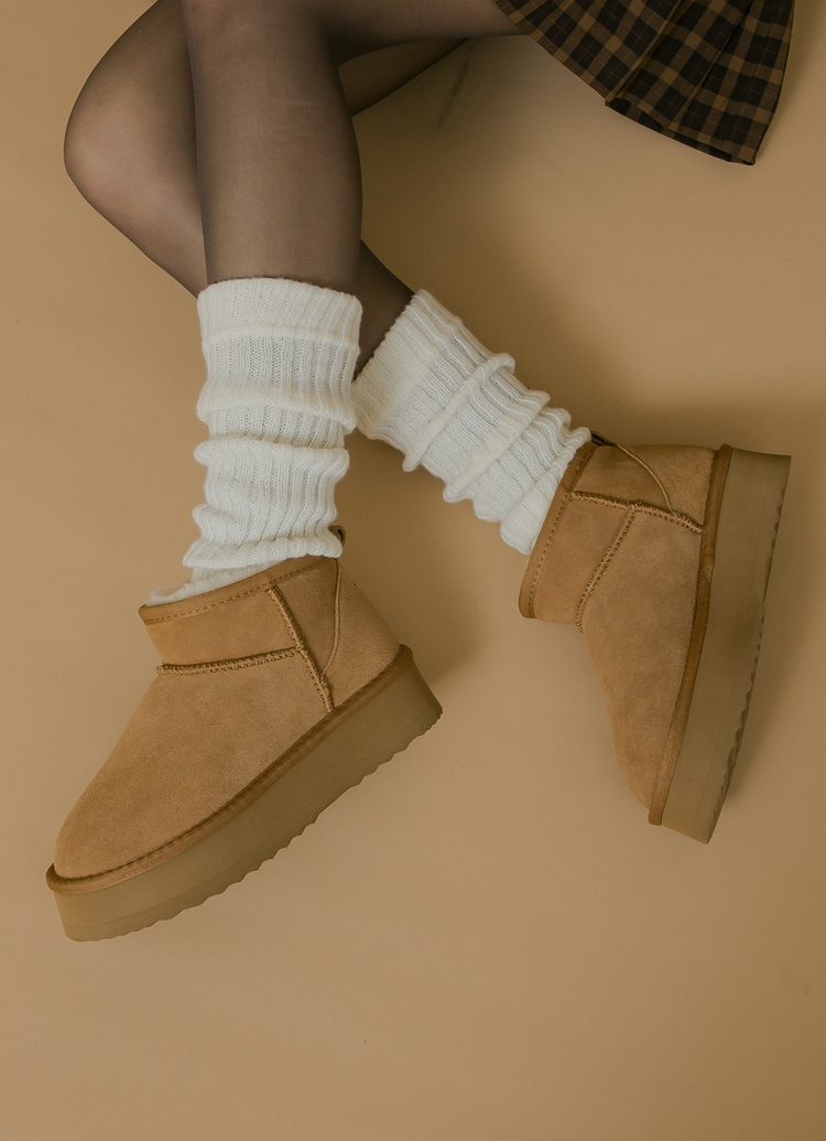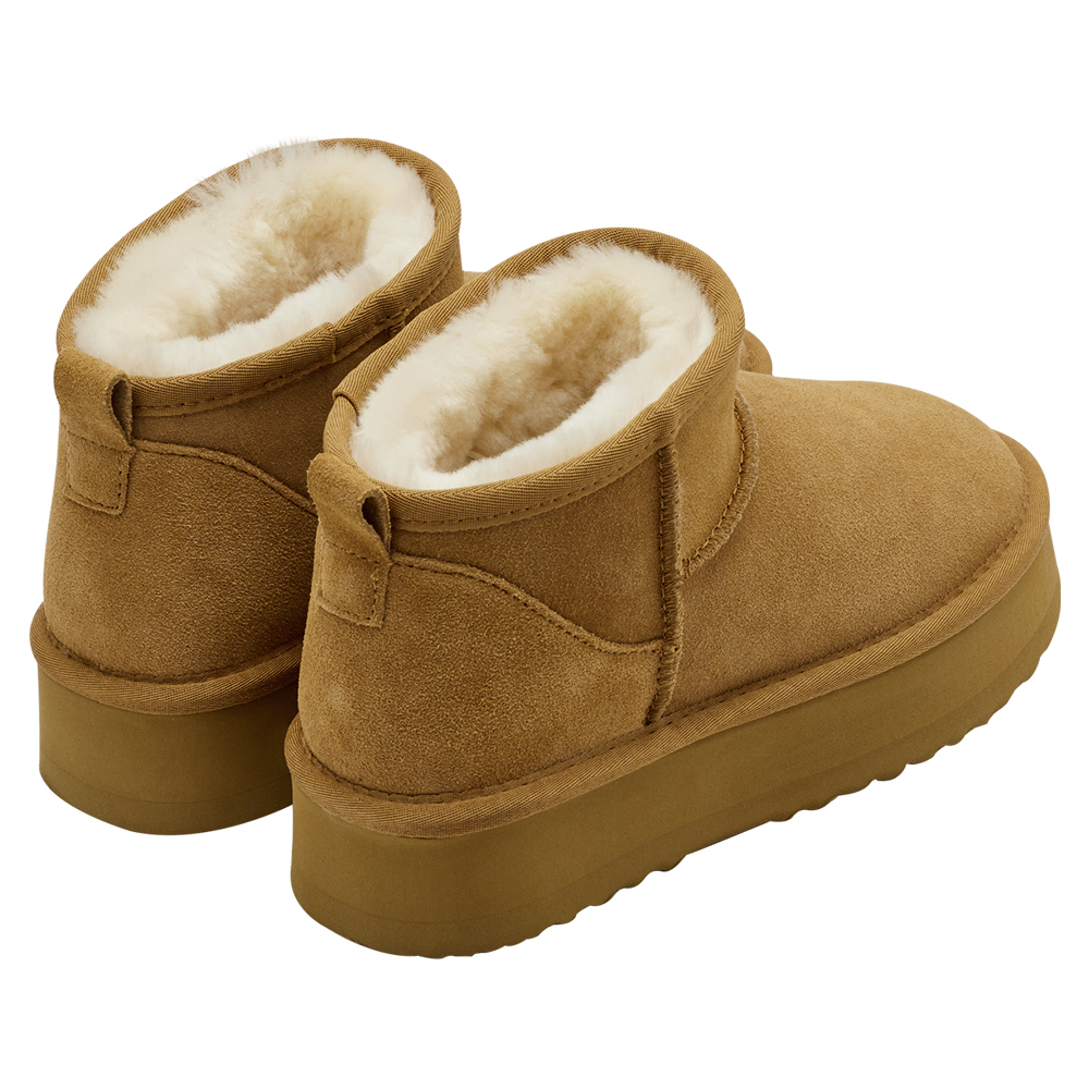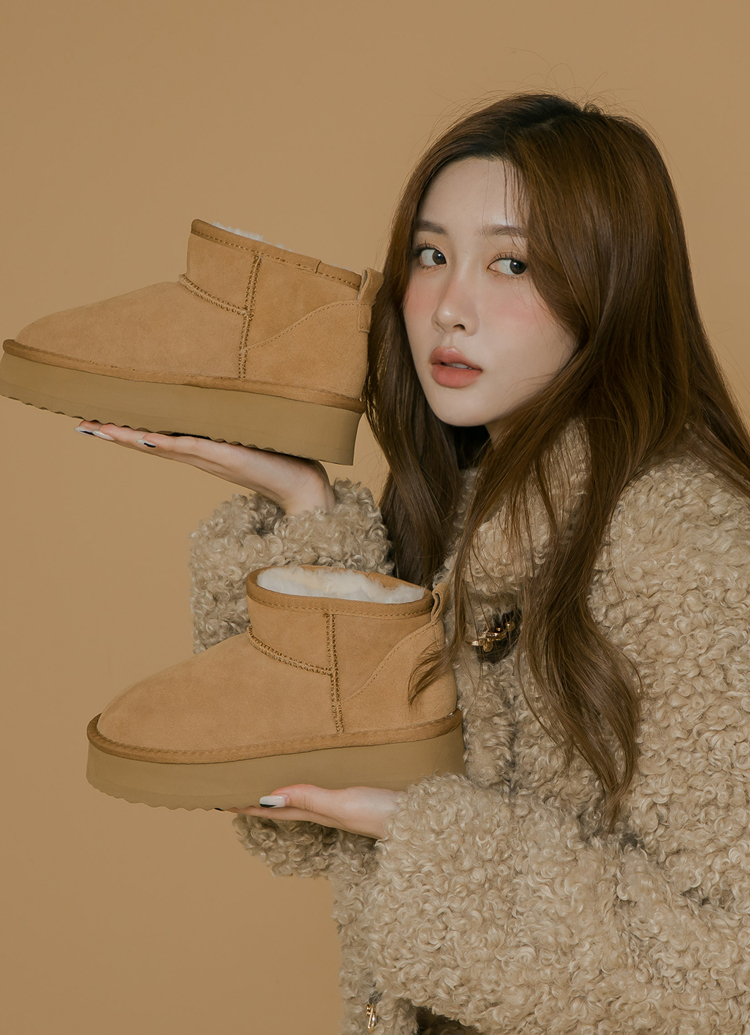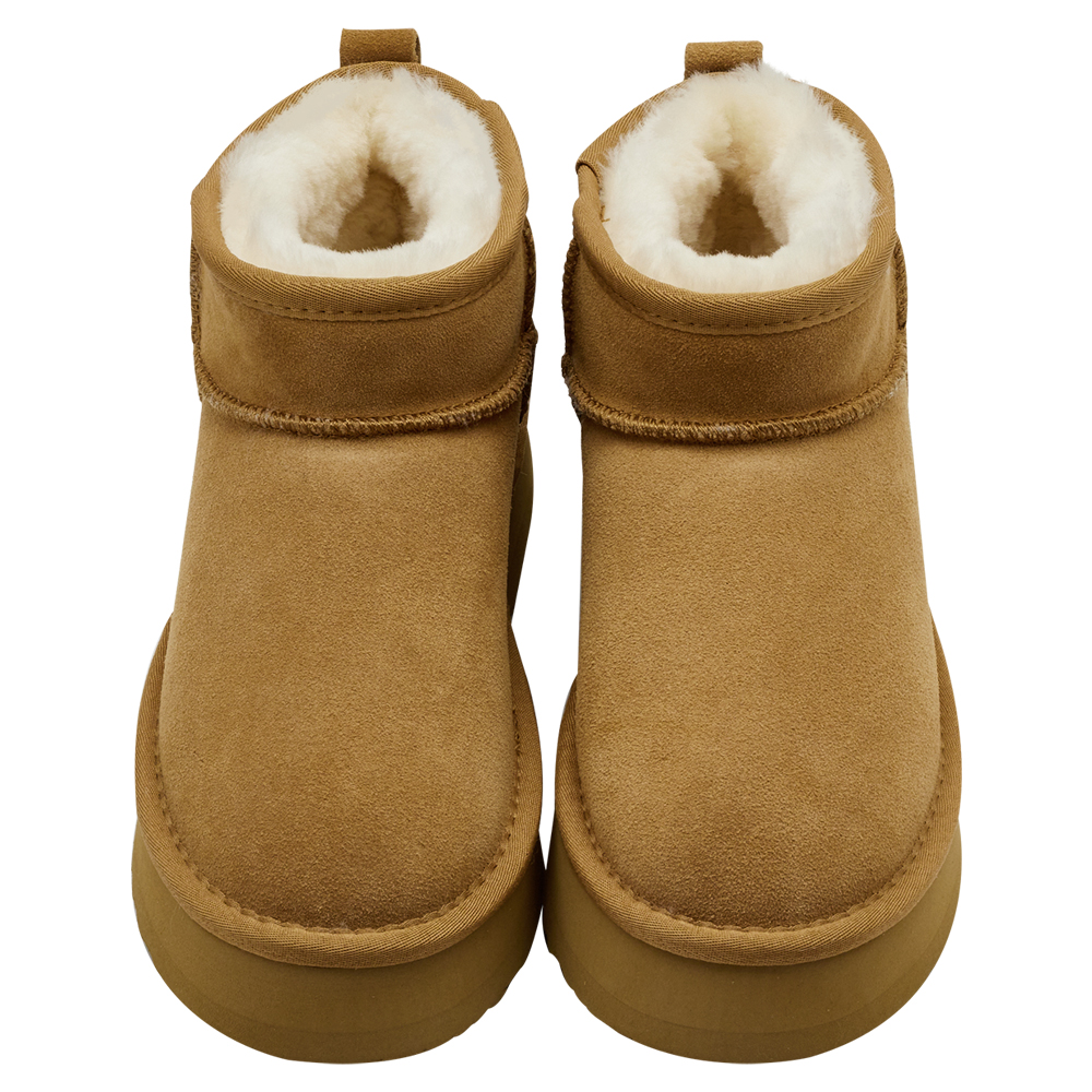 經典百搭牛麂皮羊毛短筒厚底雪靴 栗子