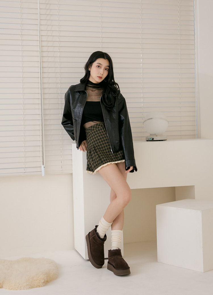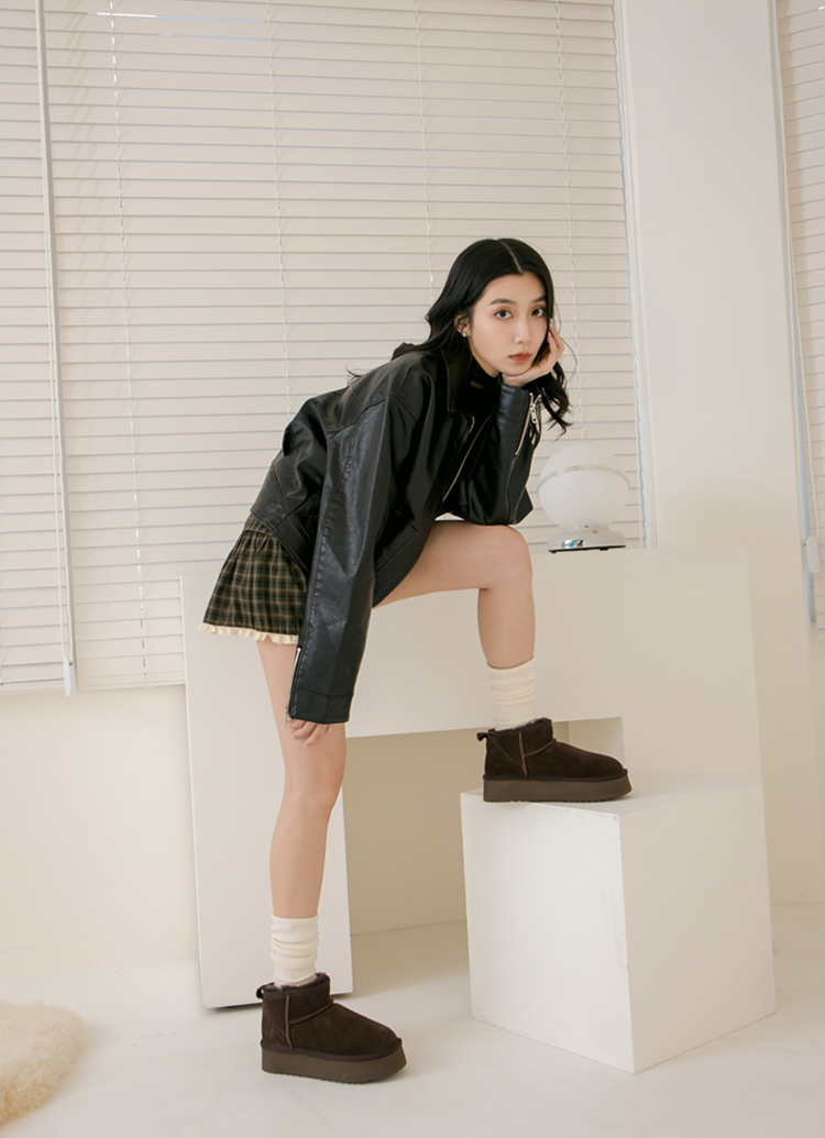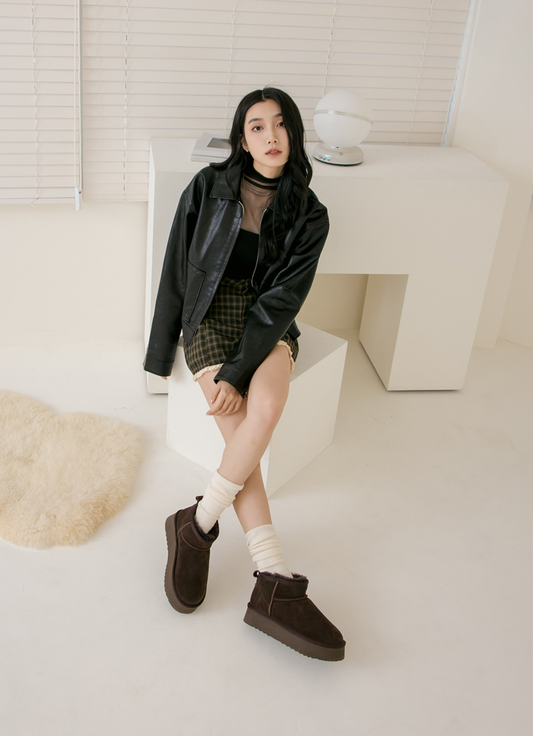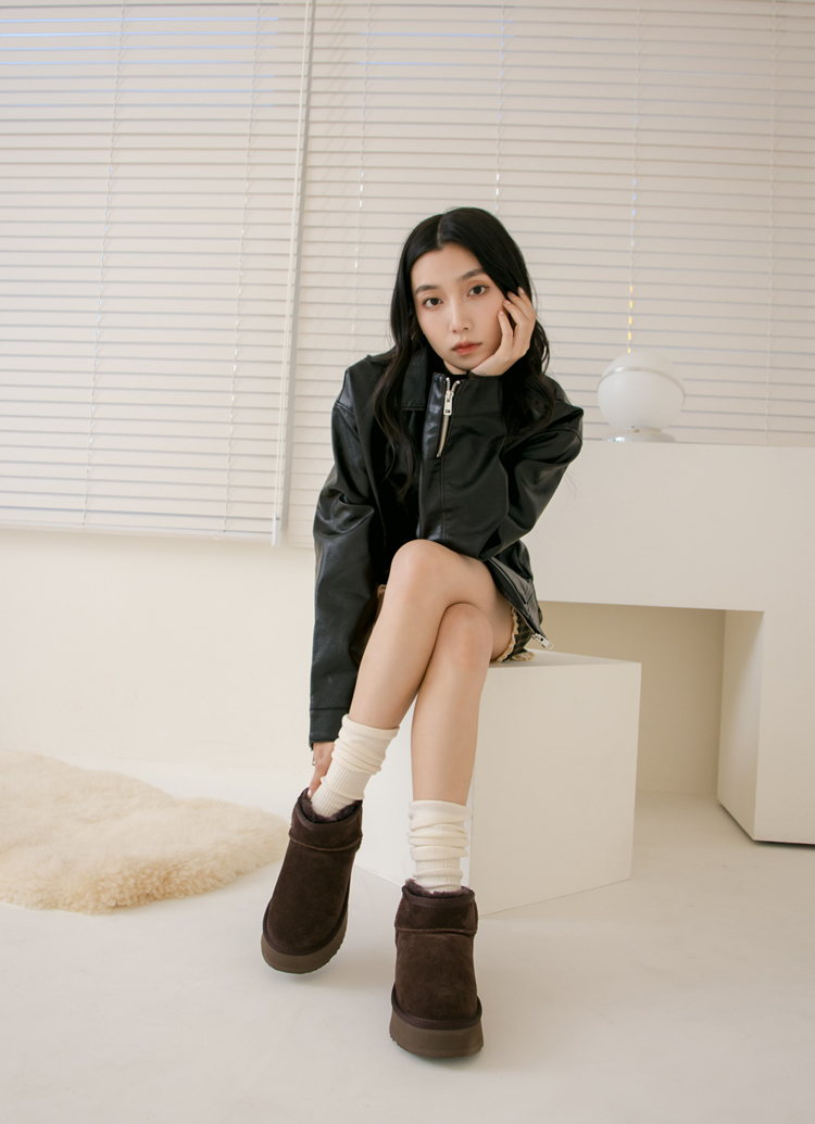 首頁 > 流行趨勢 > 舒適厚底鞋系列 >經典百搭牛麂皮羊毛短筒厚底雪靴 咖