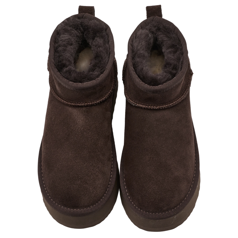 經典百搭牛麂皮羊毛短筒厚底雪靴 咖