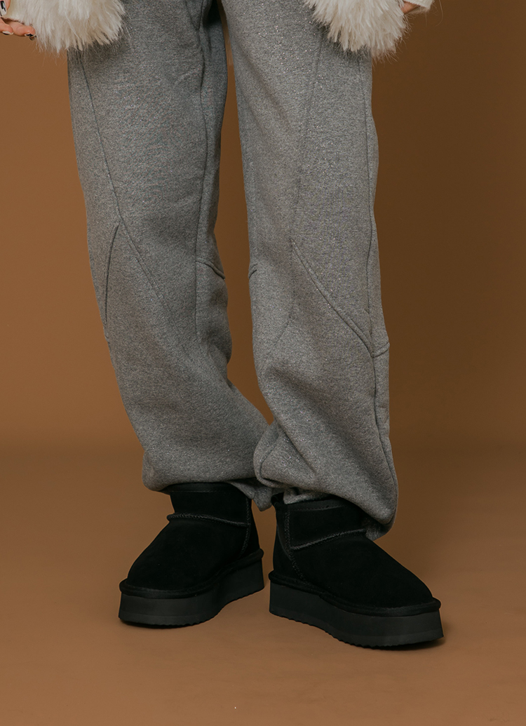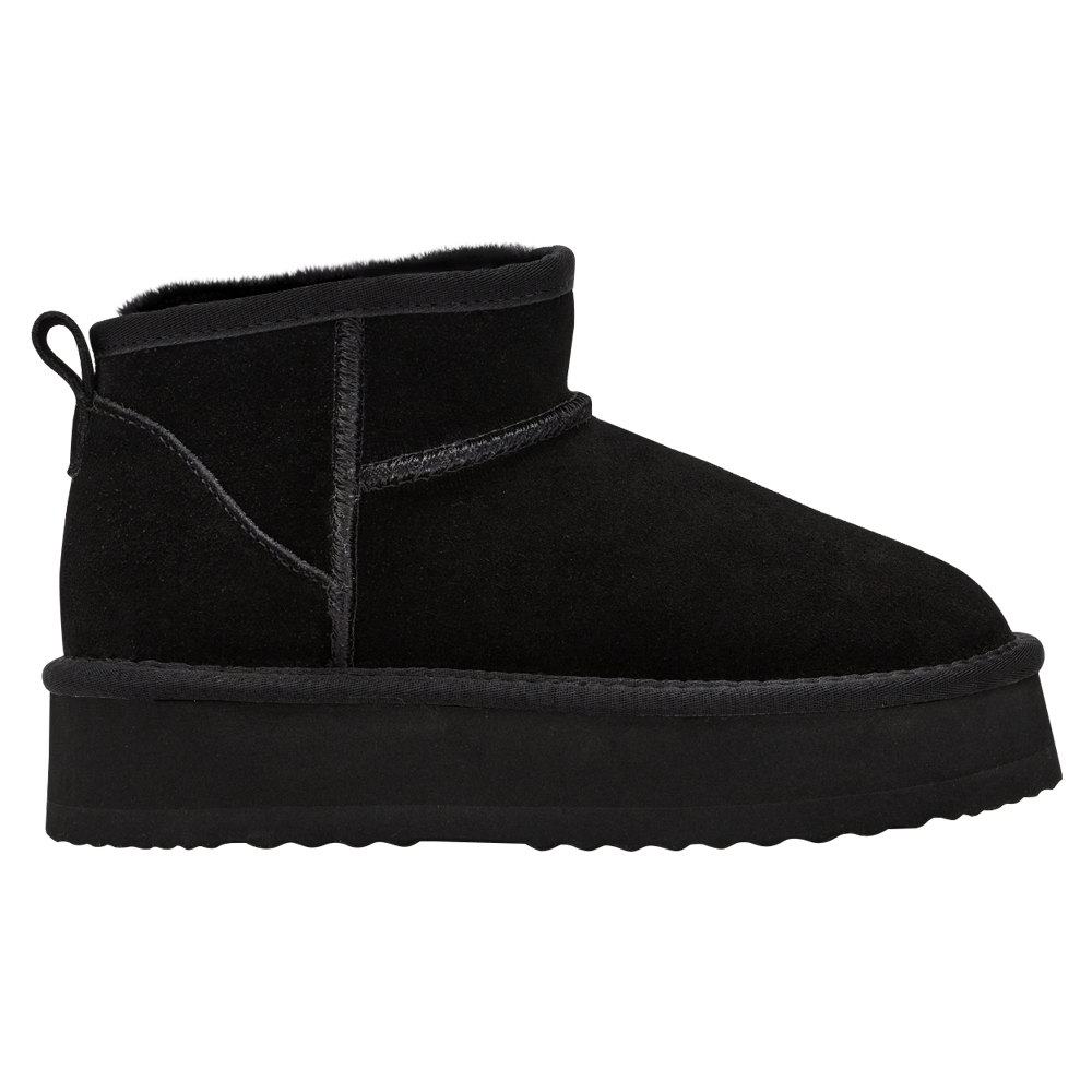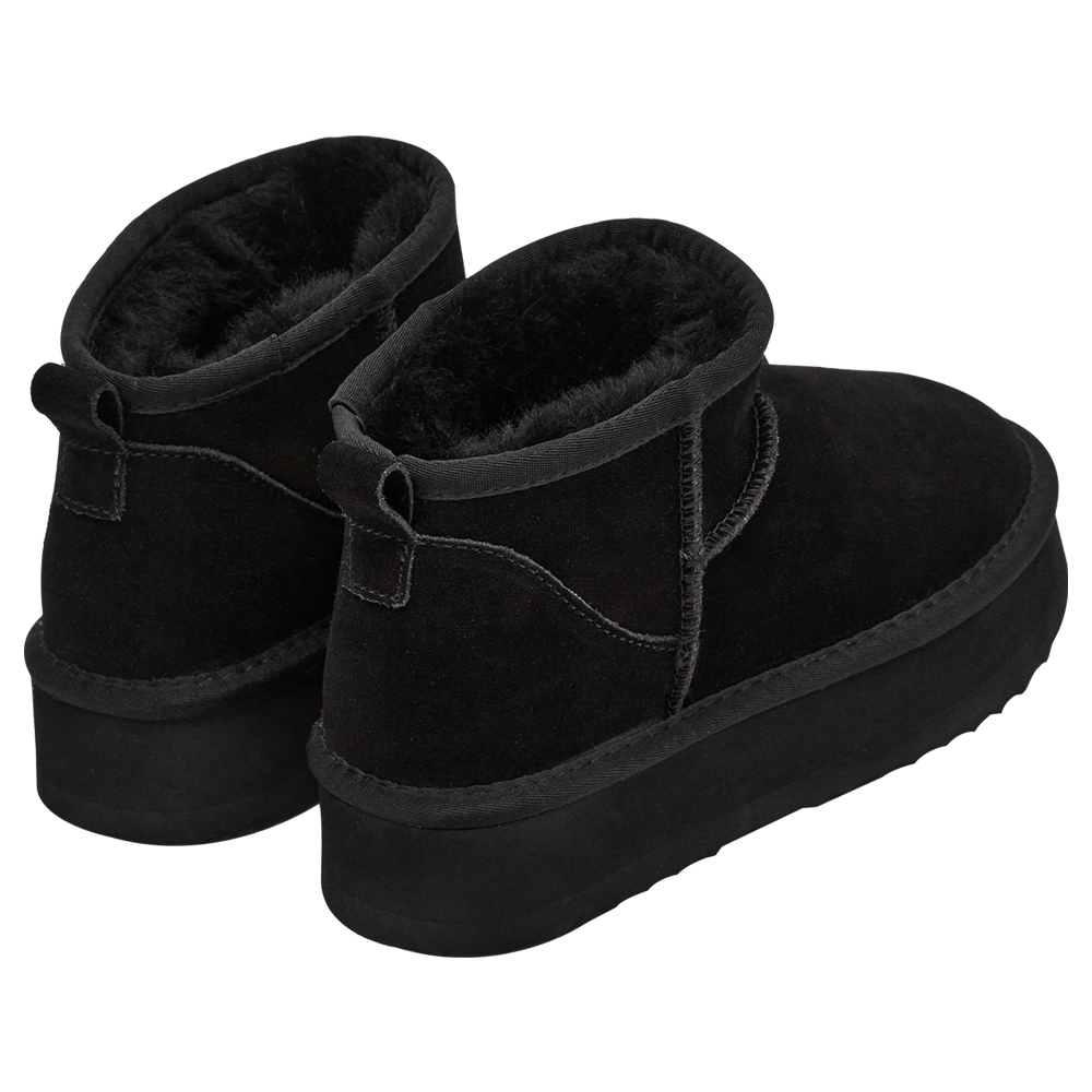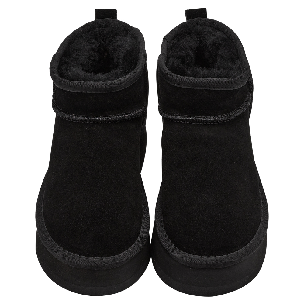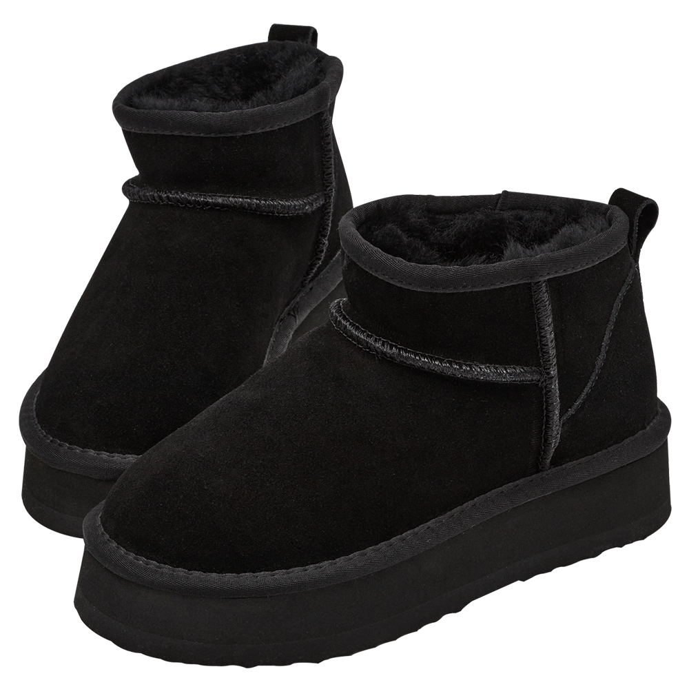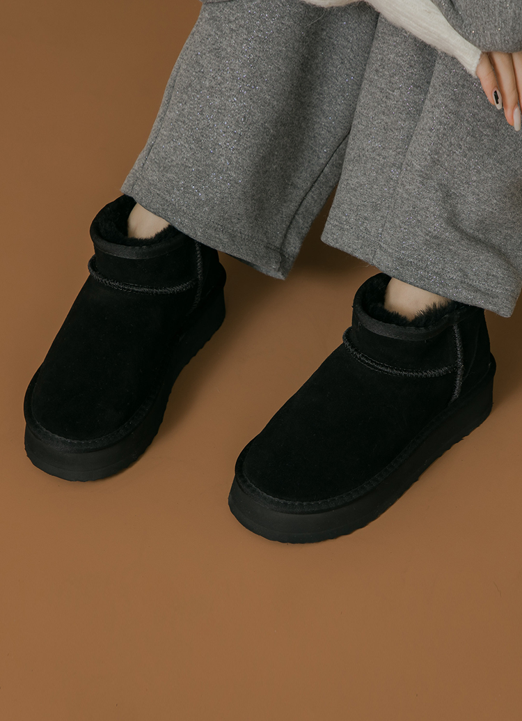 經典百搭牛麂皮羊毛短筒厚底雪靴 黑
