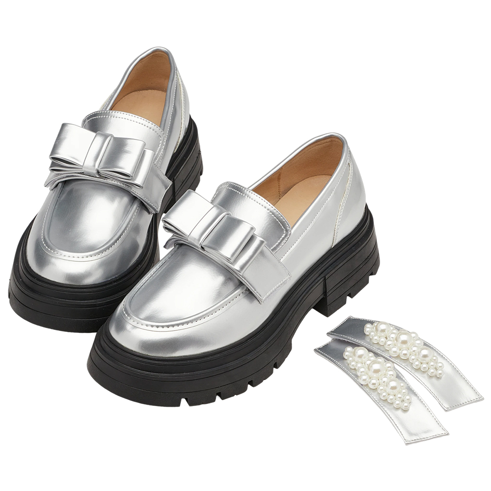 奕潔聯名-公主珍藏2WAY珍珠厚底樂福鞋 銀