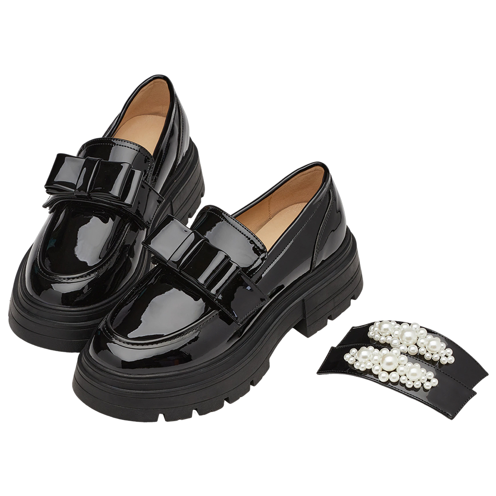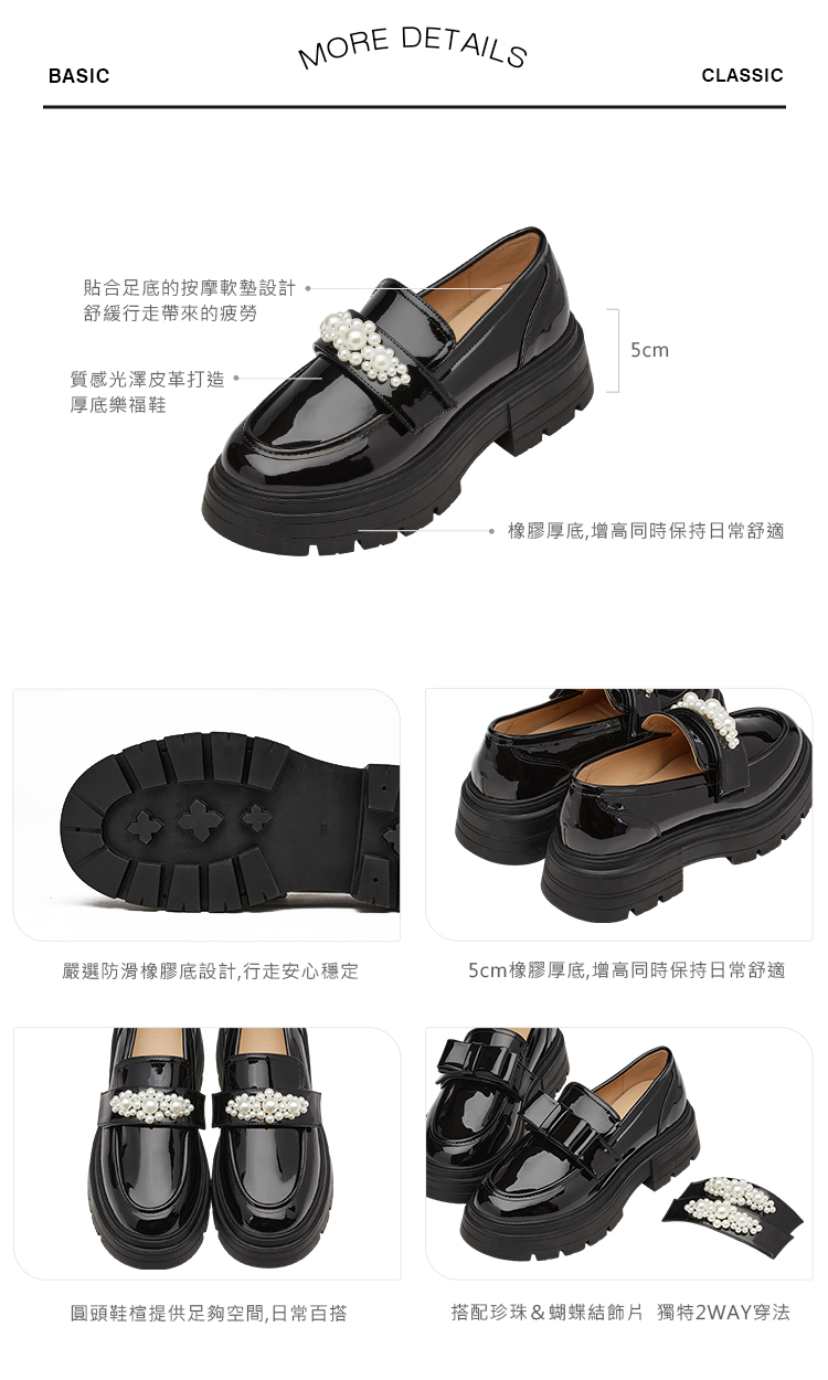 奕潔聯名-公主珍藏2WAY珍珠厚底樂福鞋 黑