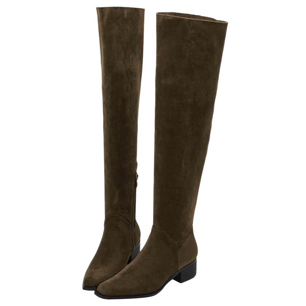 溫柔歐膩3way絨布過膝堆堆長靴 駝