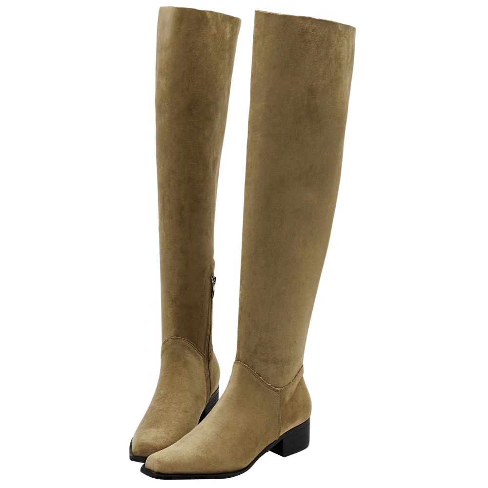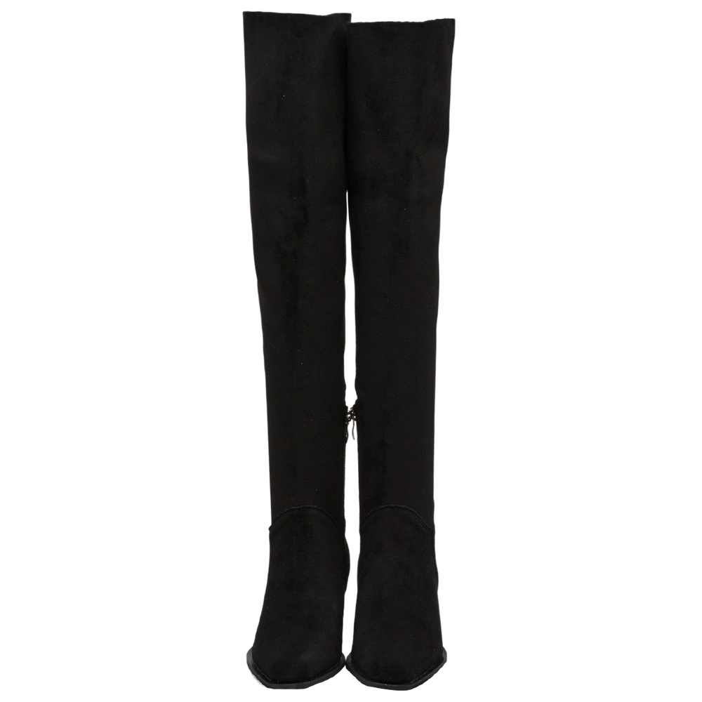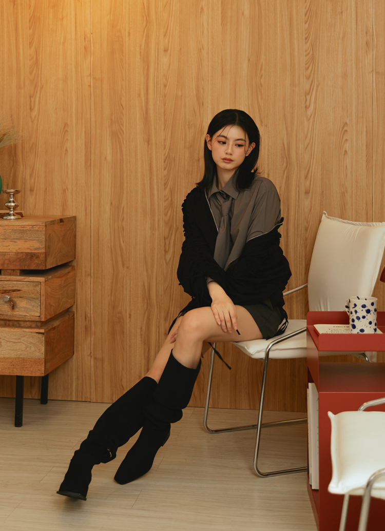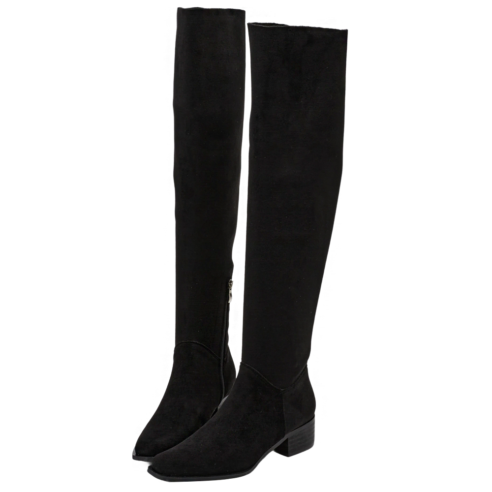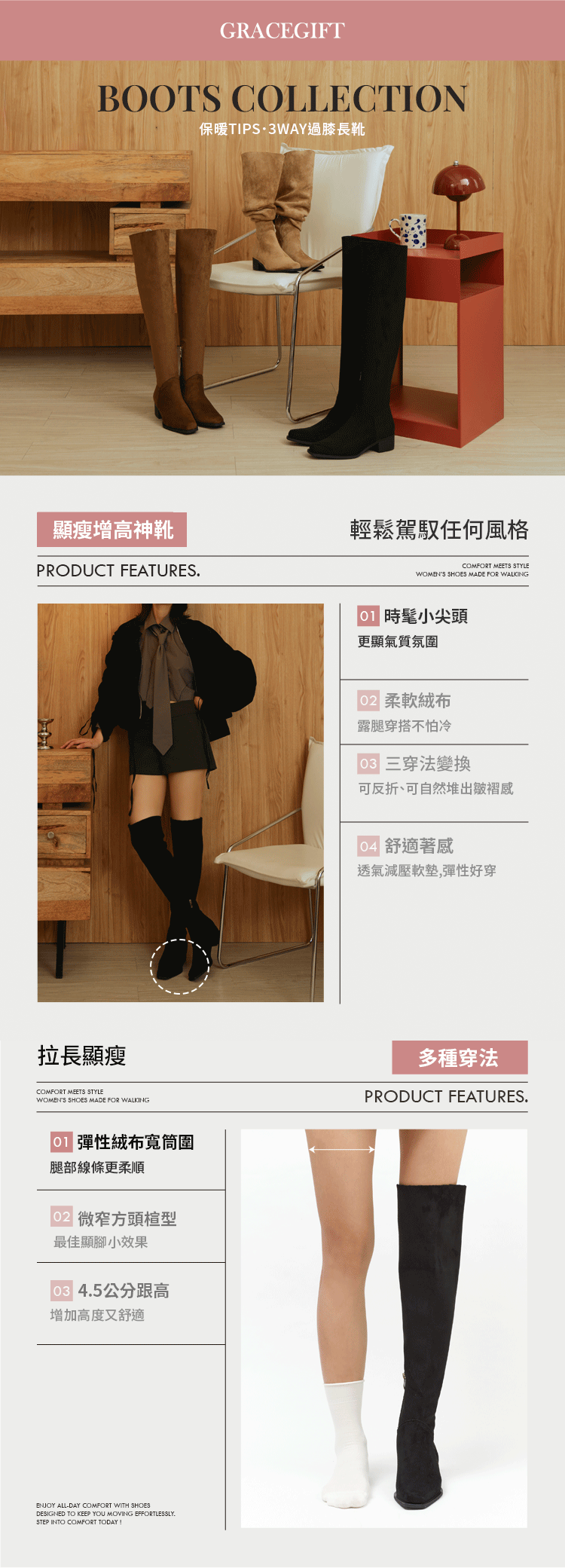 溫柔歐膩3way絨布過膝堆堆長靴 黑