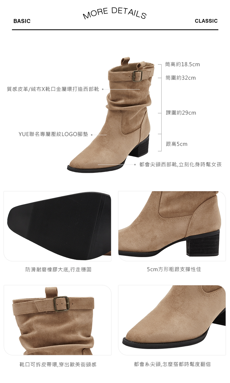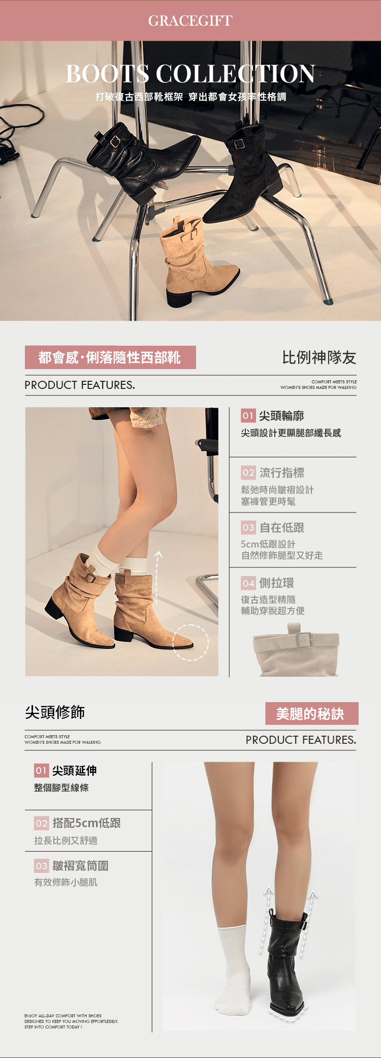 首頁 > KOL訂製 > YUE悅悅 >悅悅聯名-都會格調尖頭皮革2way堆堆低跟西部靴 黑