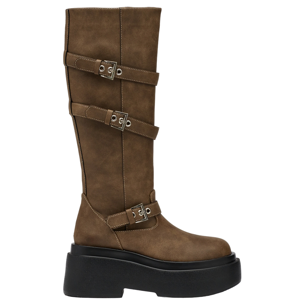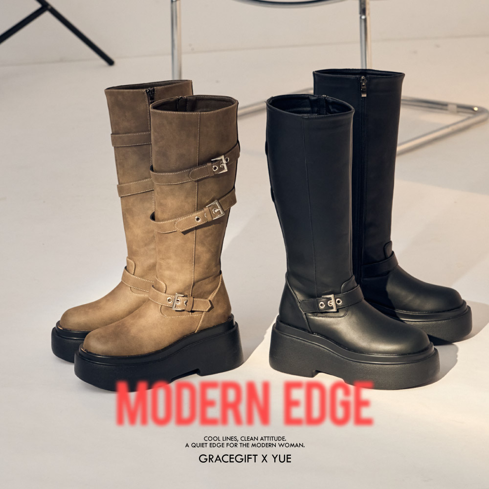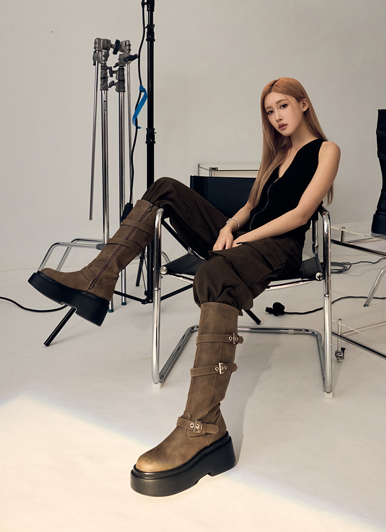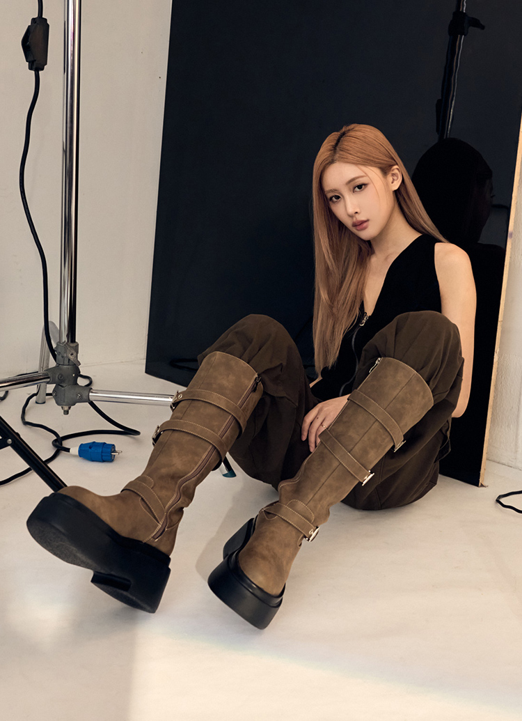 首頁 > KOL訂製 > YUE悅悅 >悅悅聯名-紐約街頭刷色扣環輕量厚底長靴 棕