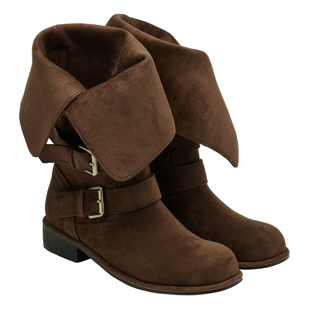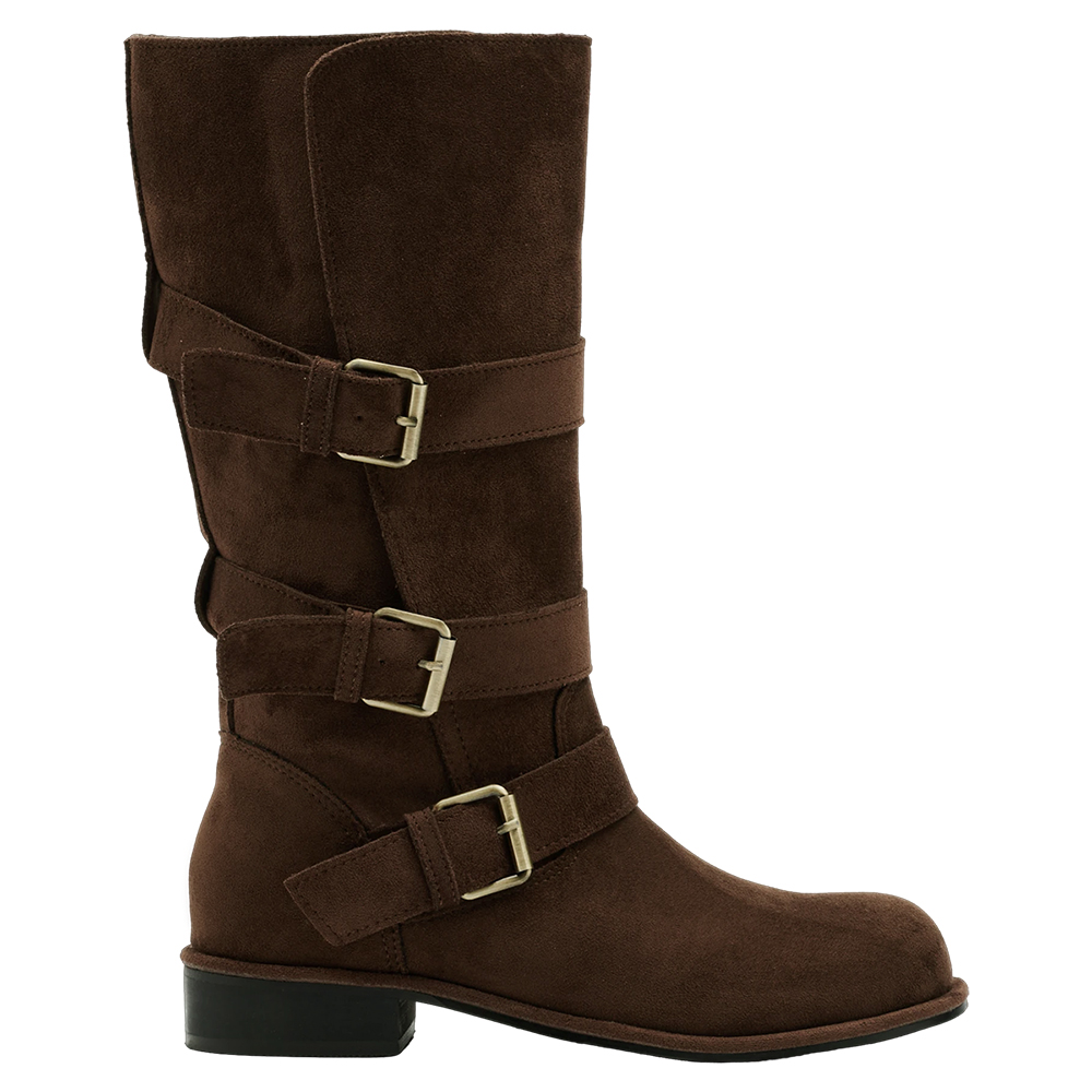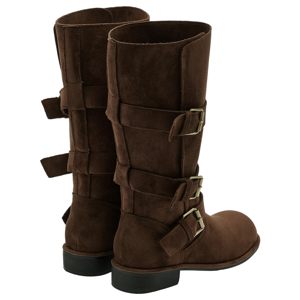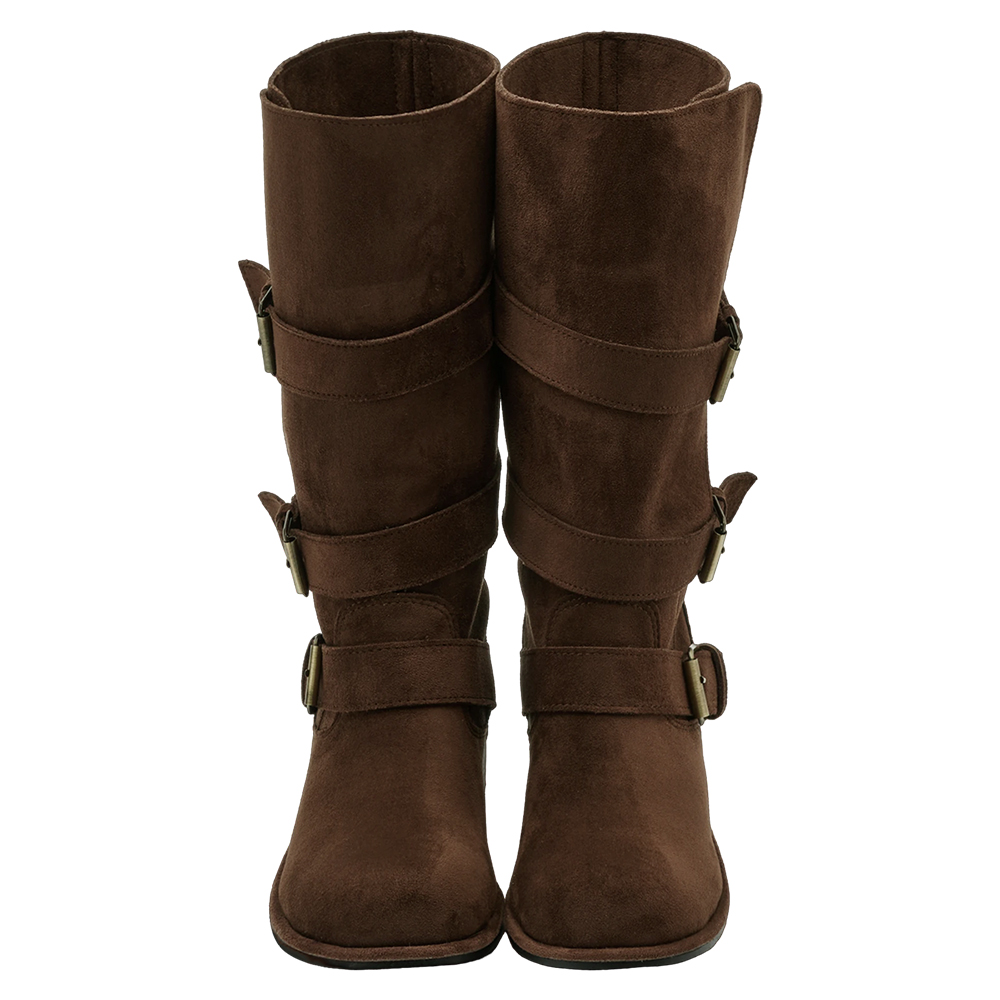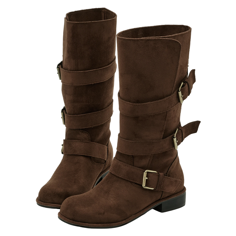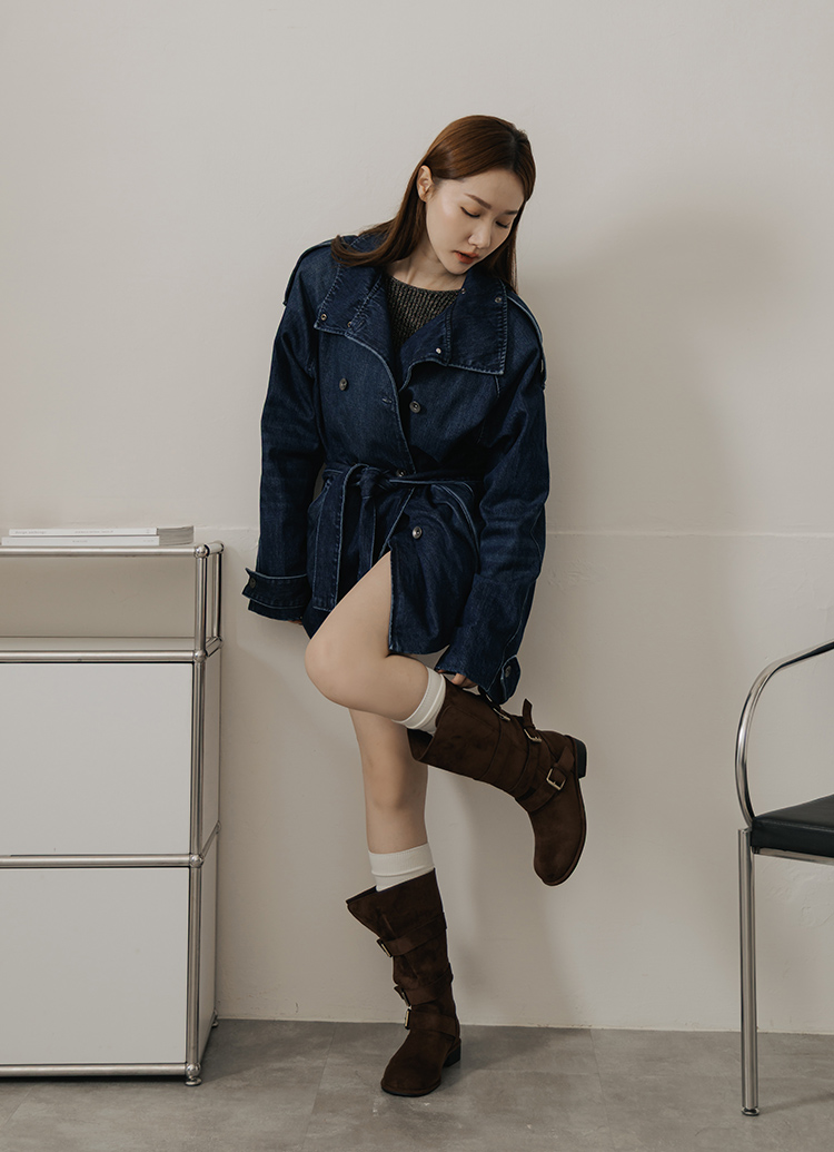 韓系街拍絨布2WAY皮帶釦騎士靴 咖
