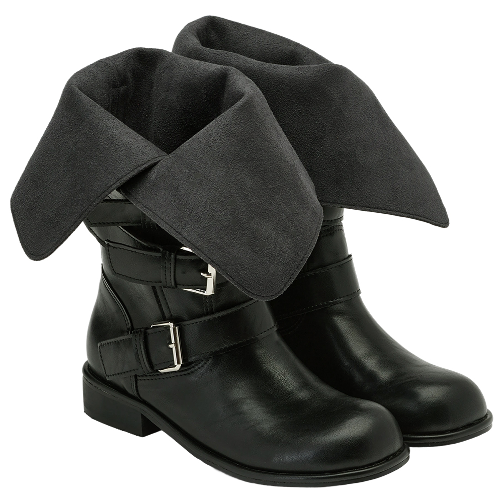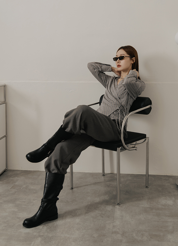 韓系街拍皮革2WAY皮帶釦騎士靴 黑