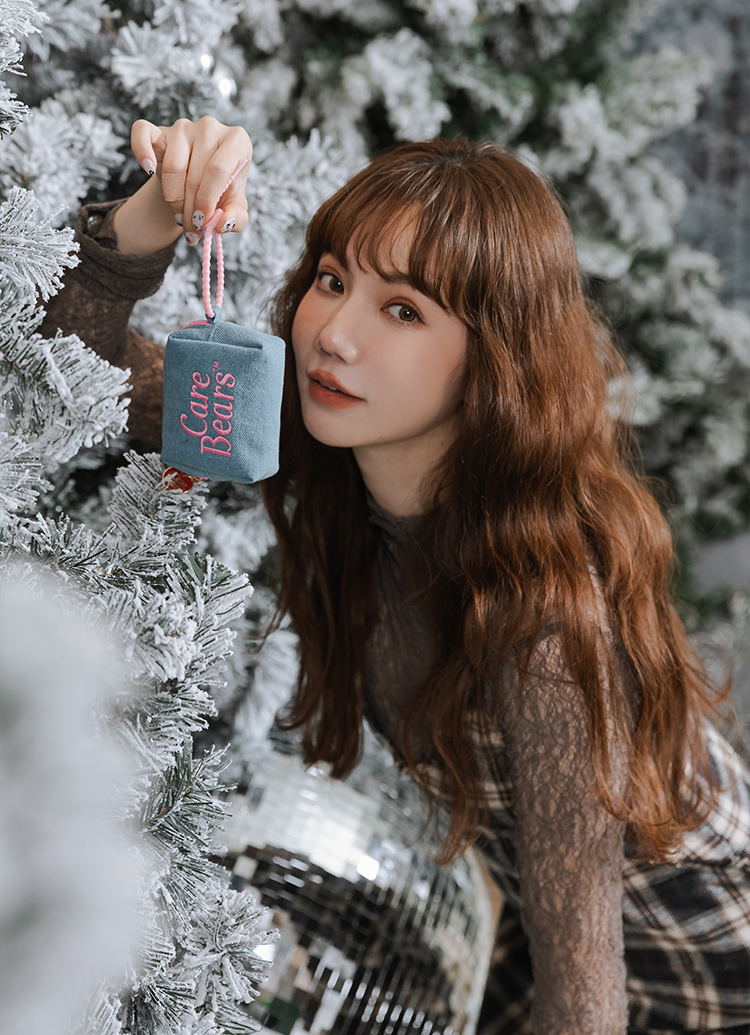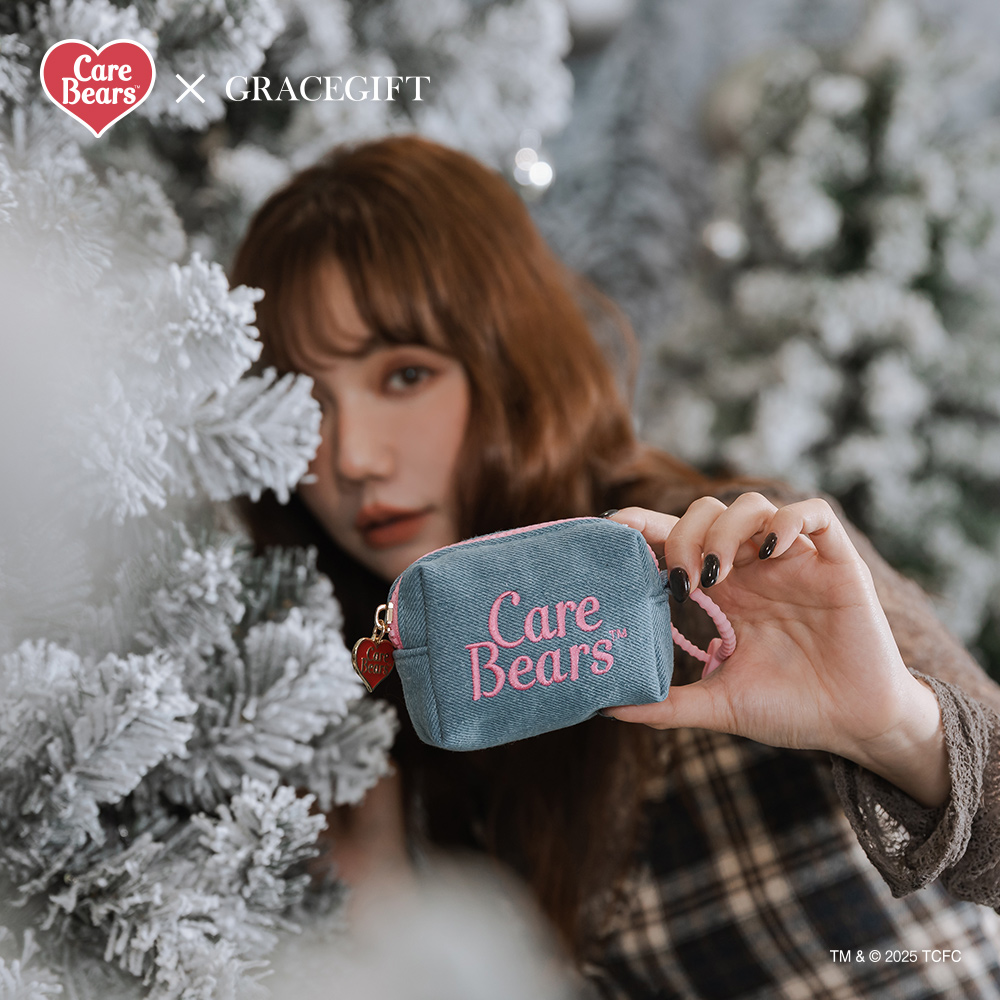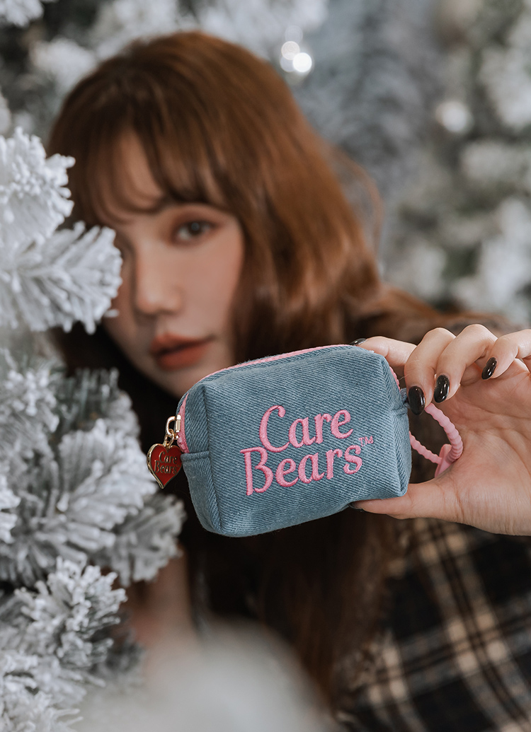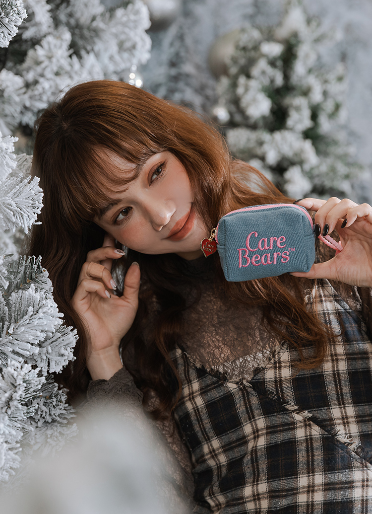 Care Bears-樂觀小熊電繡格紋吊飾零錢包 深藍