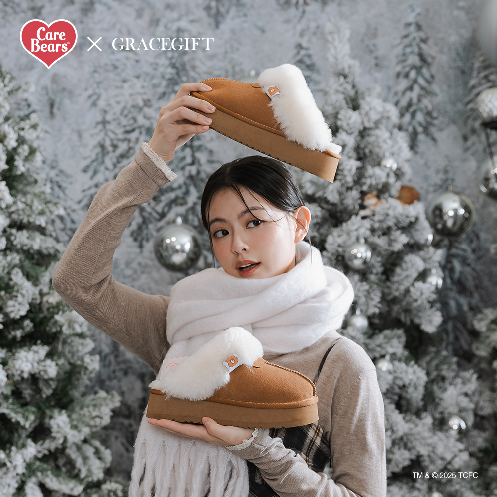 首頁 > 女鞋 >Care Bears-溫柔小熊牛麂皮羊毛厚底雪地拖鞋 棕