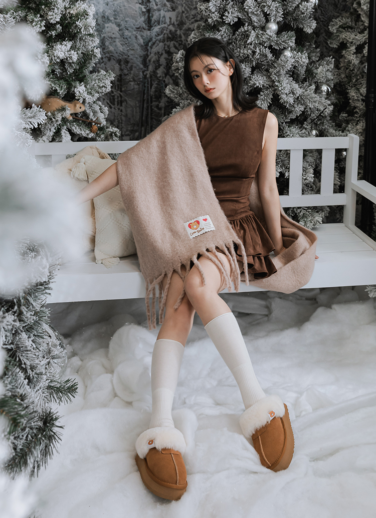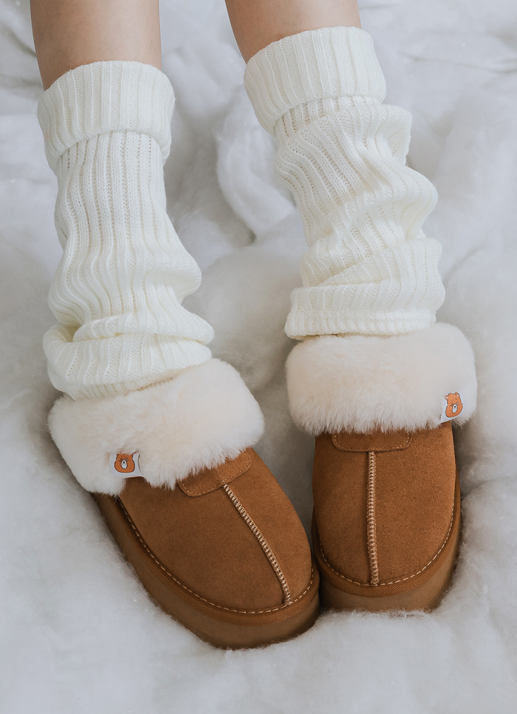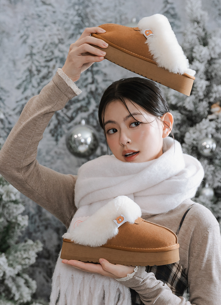 鞋口圍繞蓬鬆羊毛,雙腳如雲朵般包覆感