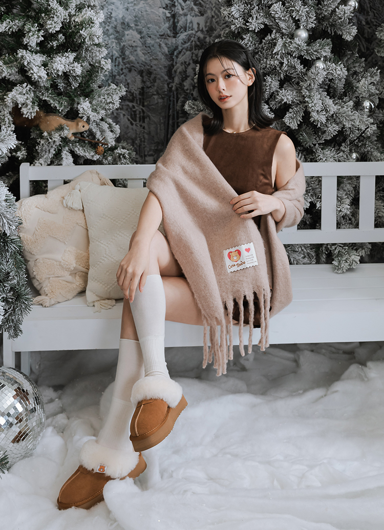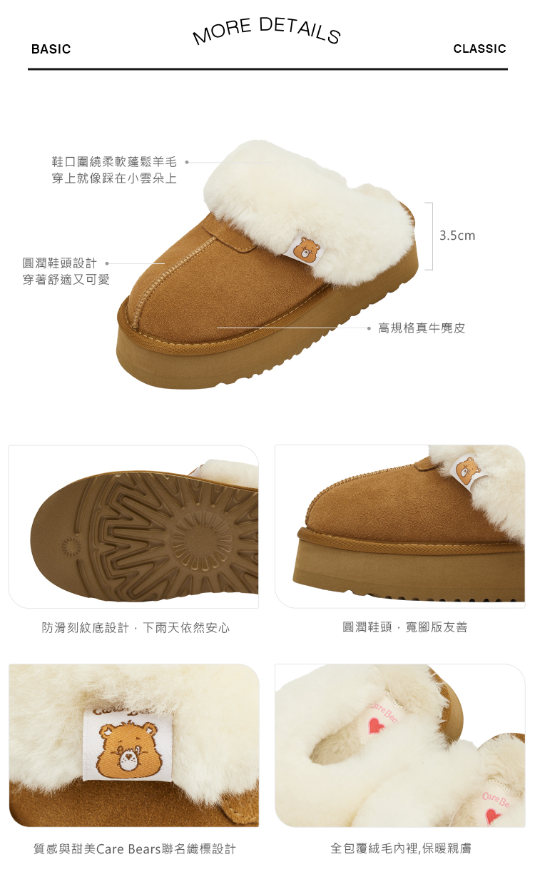 首頁 >女鞋 >Care Bears-溫柔小熊牛麂皮羊毛厚底雪地拖鞋 棕