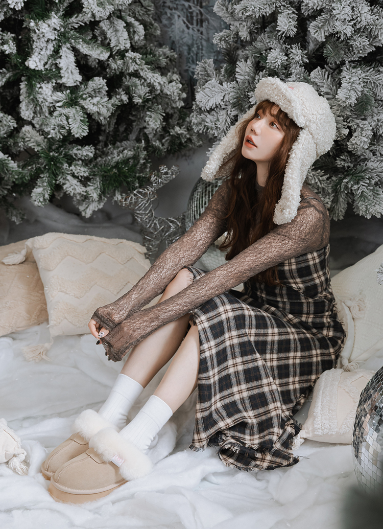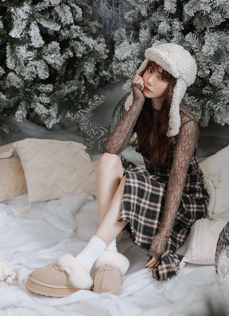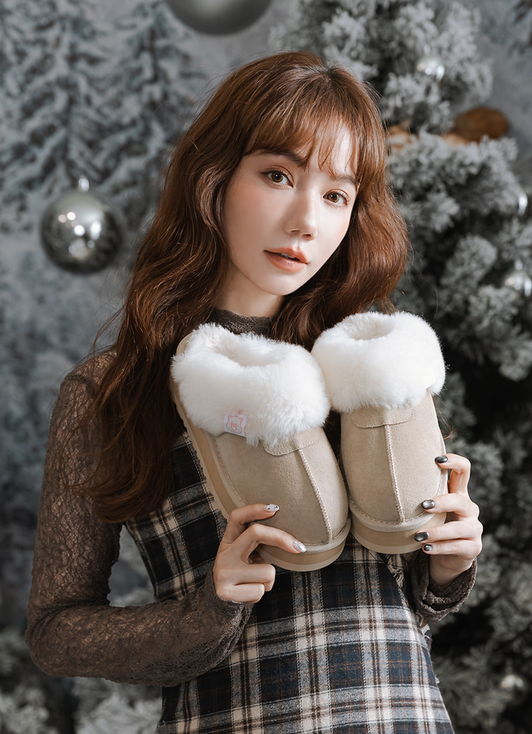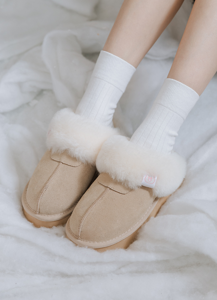 鞋口圍繞蓬鬆羊毛,雙腳如雲朵般包覆感