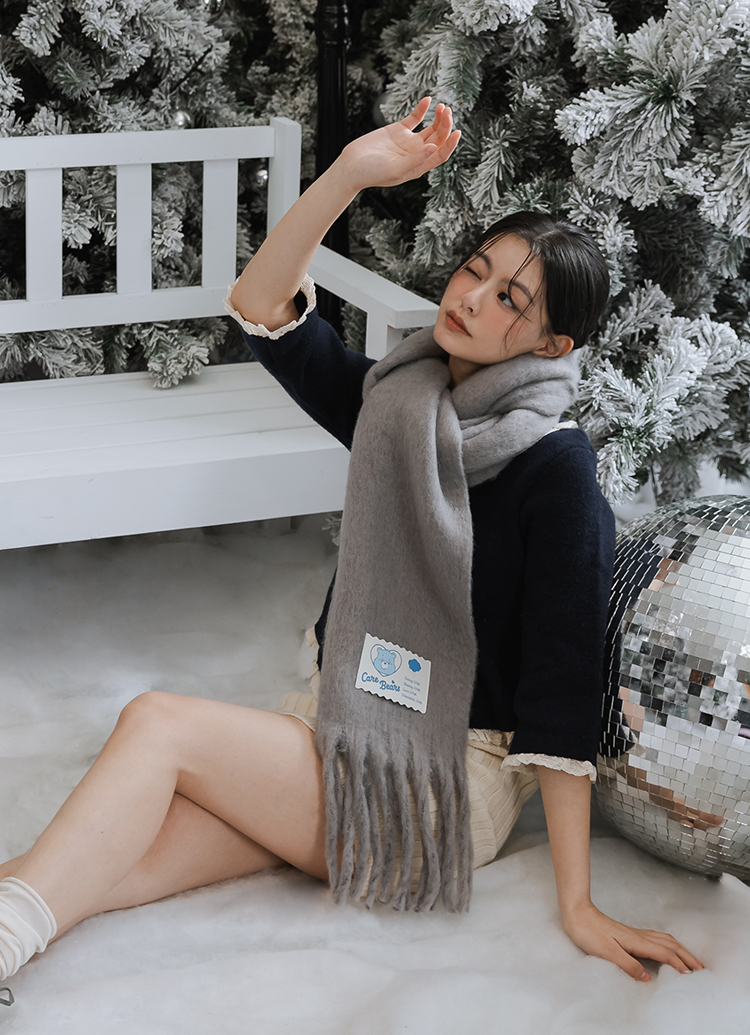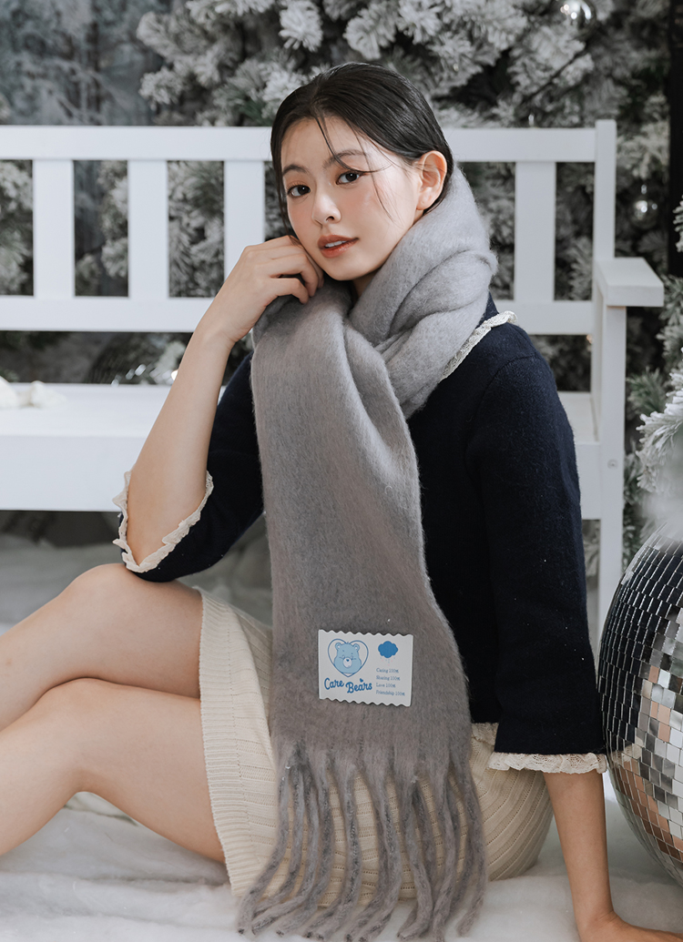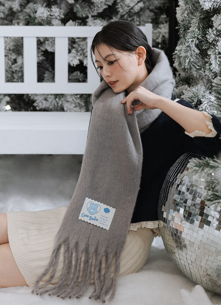 Care Bears-牢騷小熊純色流蘇仿羊絨圍巾 灰