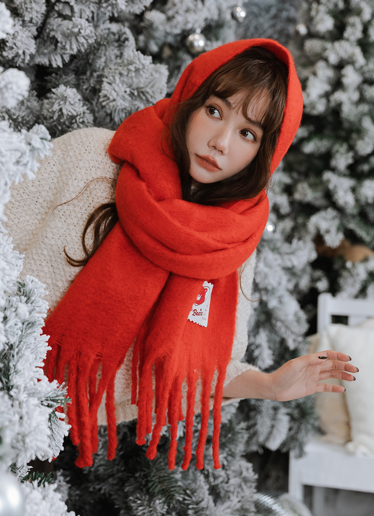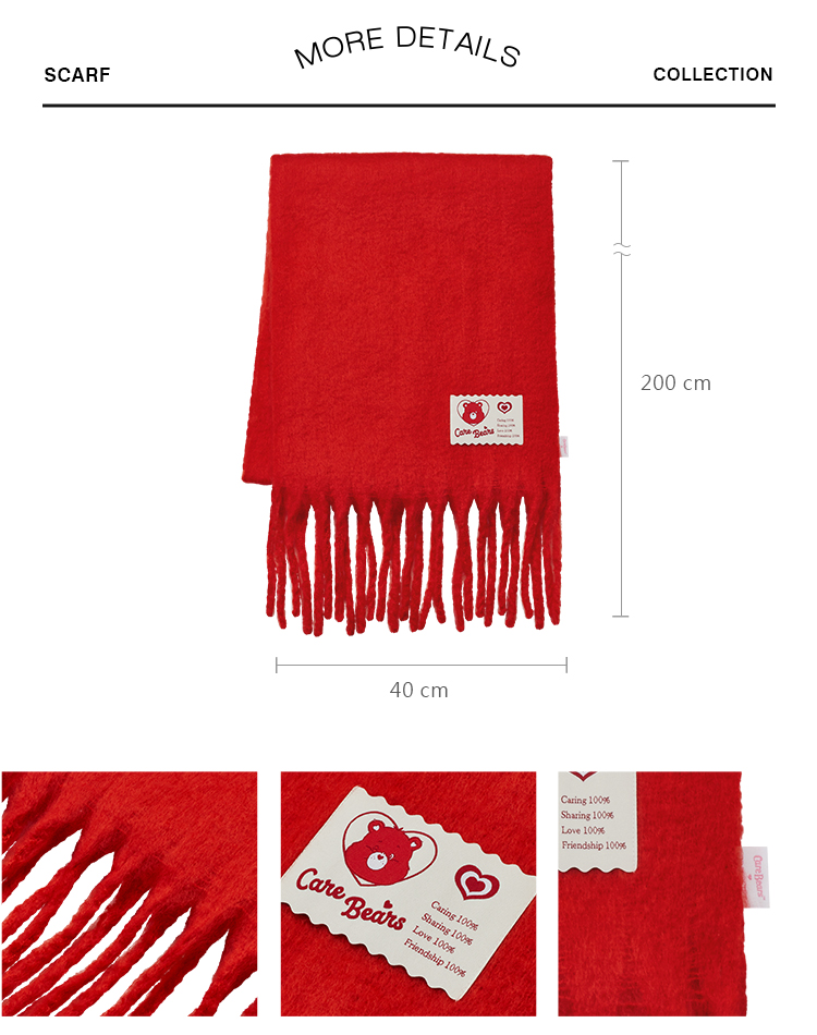 Care Bears-全心全意小熊純色流蘇仿羊絨圍巾 紅