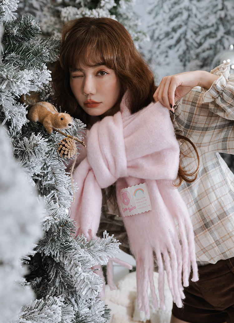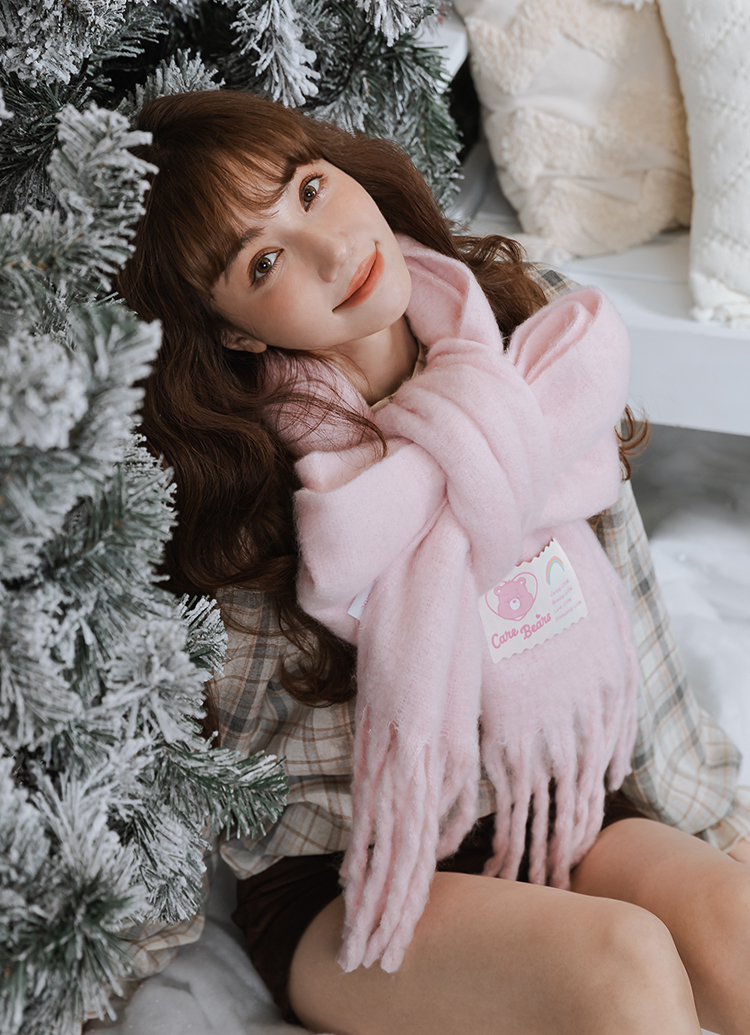 Care Bears-樂觀小熊純色流蘇仿羊絨圍巾 粉紅
