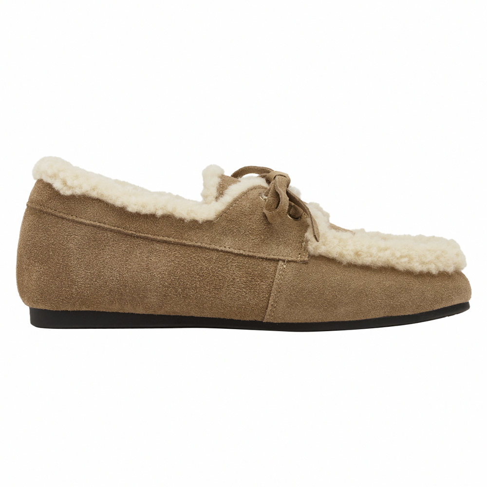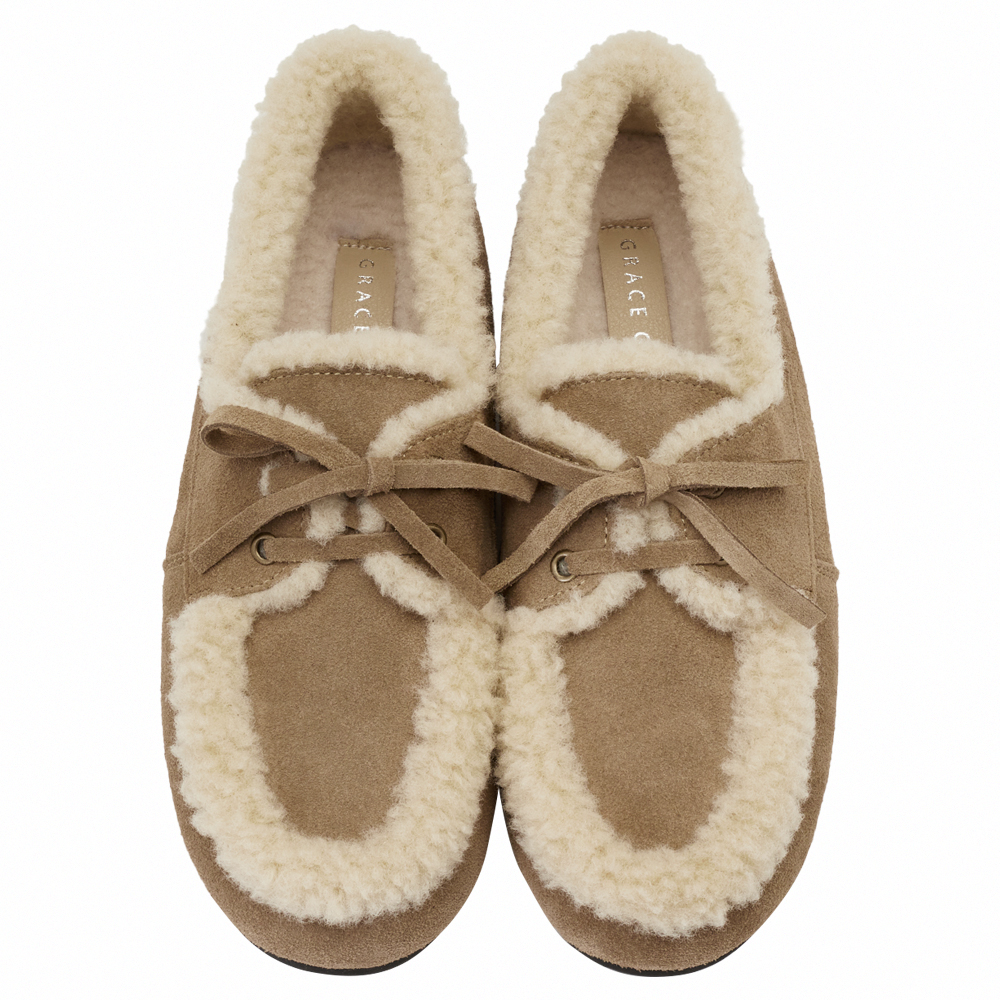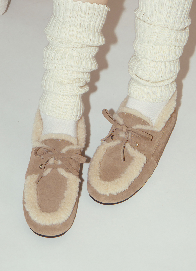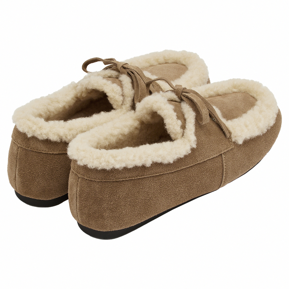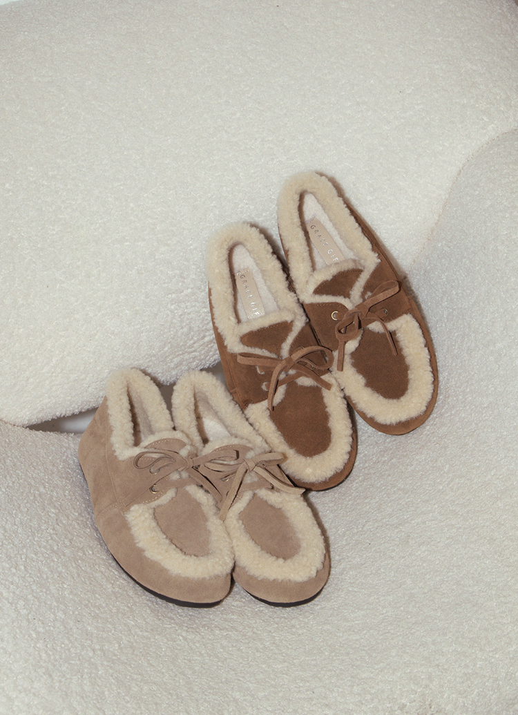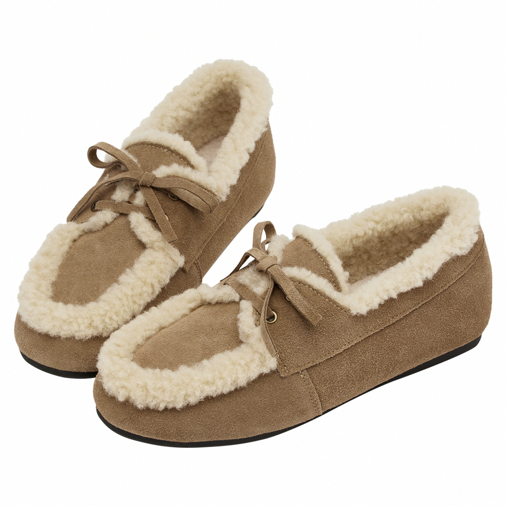復古暖意真皮羊羔毛莫卡辛鞋 駝