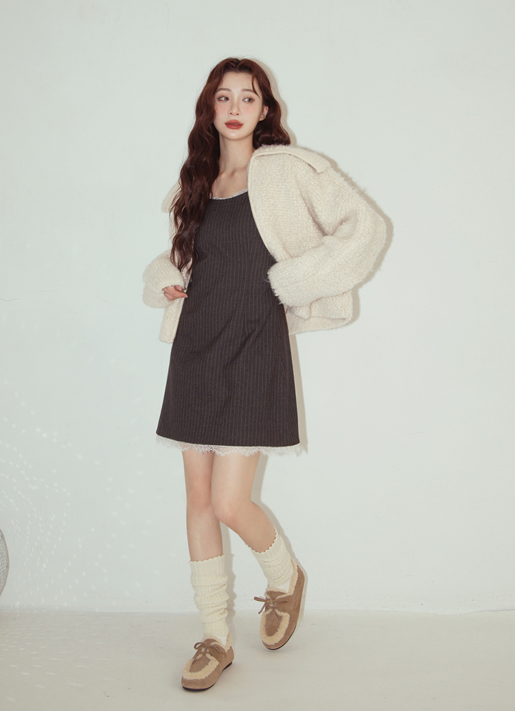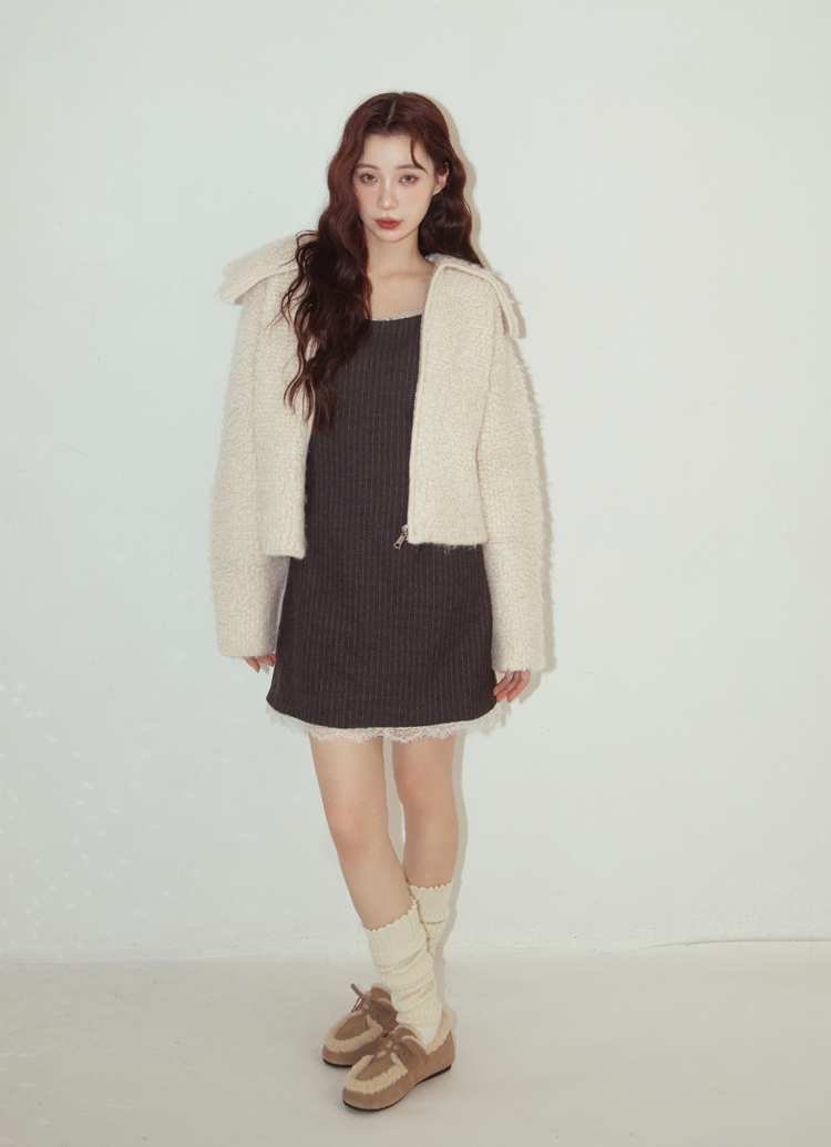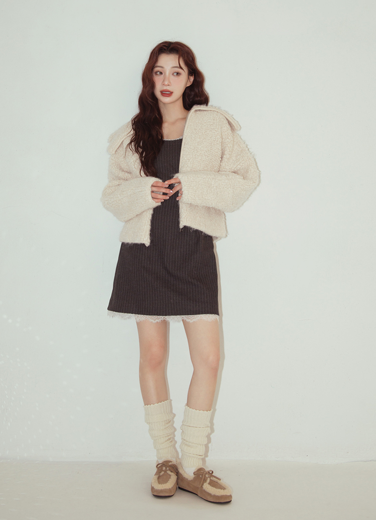 車邊毛毛增加可愛層次,冬季穿搭的小亮點