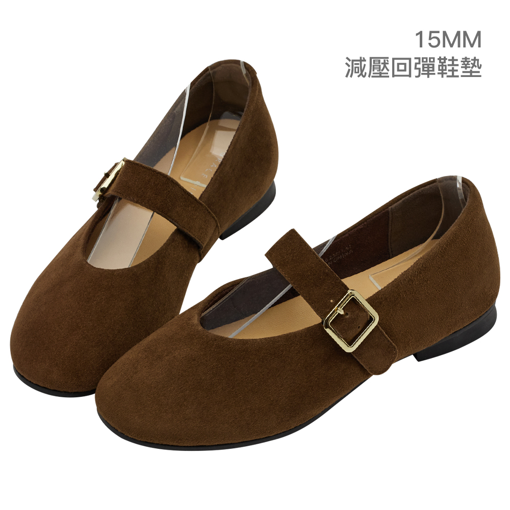輕甜冬日真皮毛毛輕量瑪莉珍平底鞋 杏