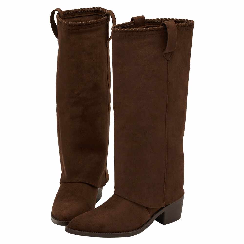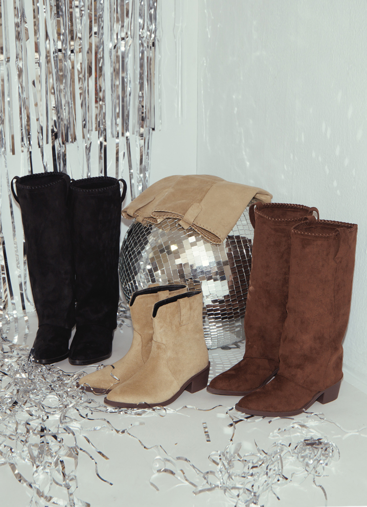 首頁 > 女鞋 > 靴子全系列 >超模尖頭絨布2way可拆式褲管西部長靴 咖