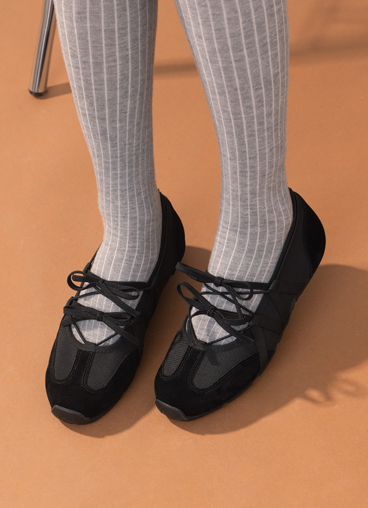 首爾芭蕾機能綁帶蝴蝶結瑪莉珍運動鞋 黑