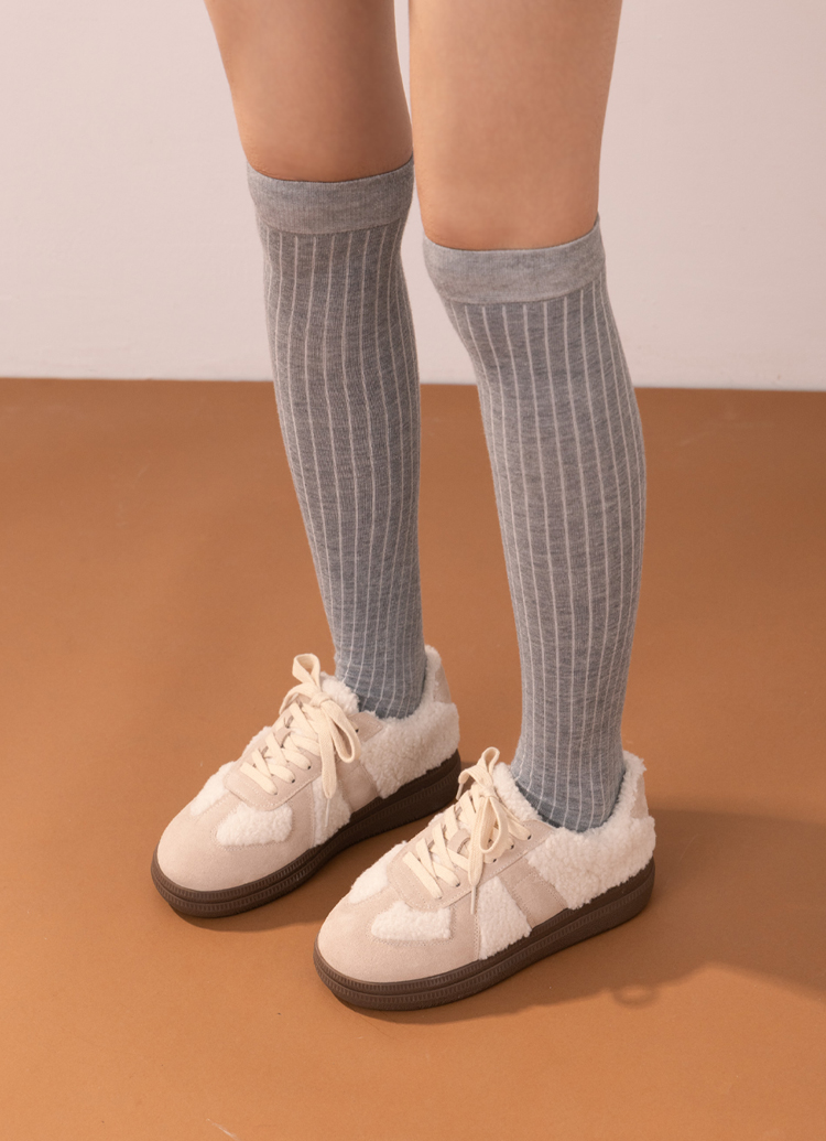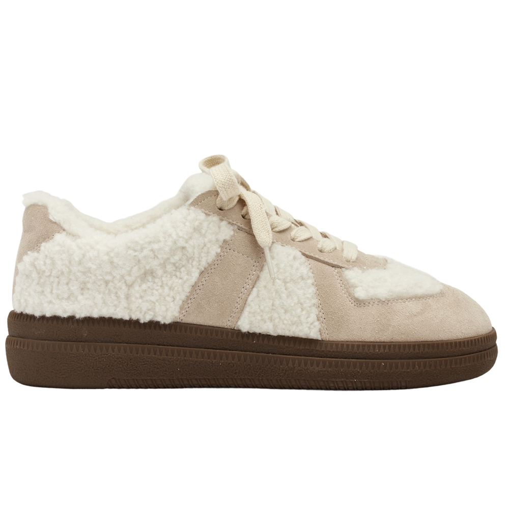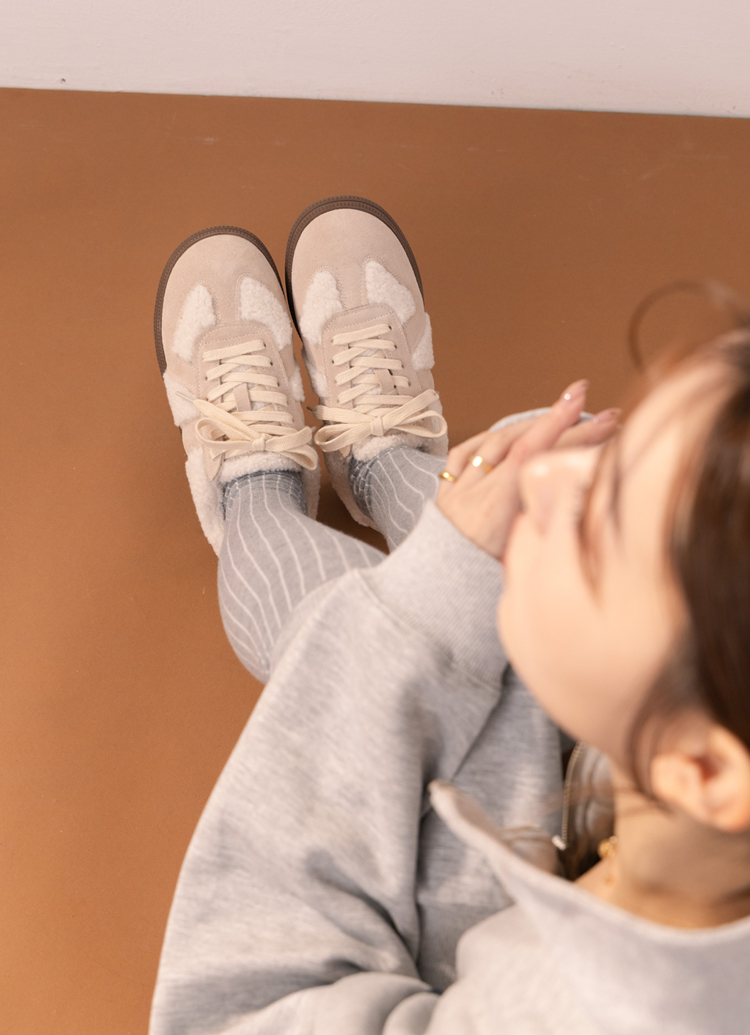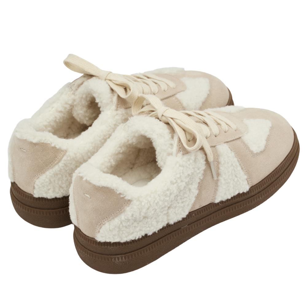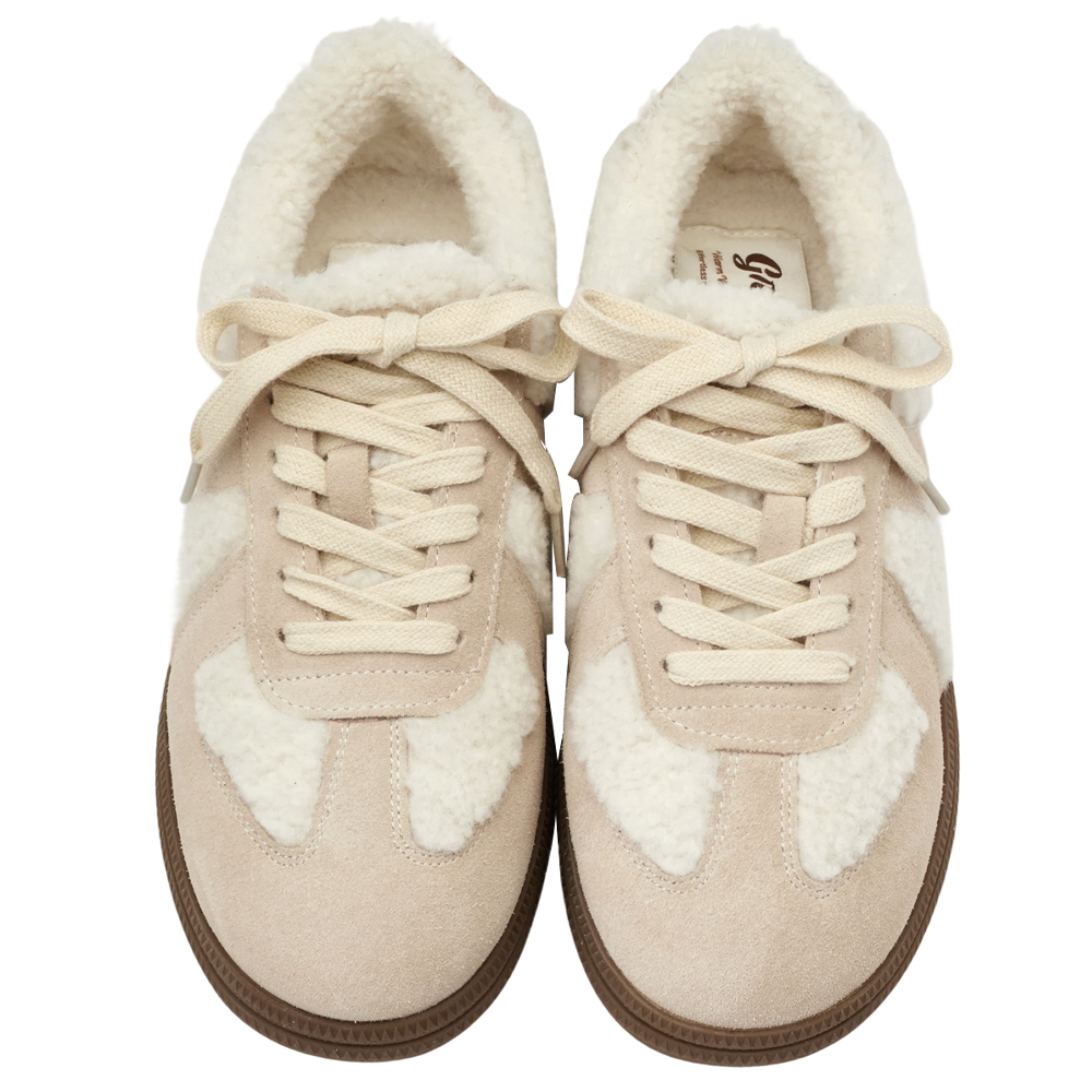 泰迪冬絨毛毛厚底德訓鞋 杏